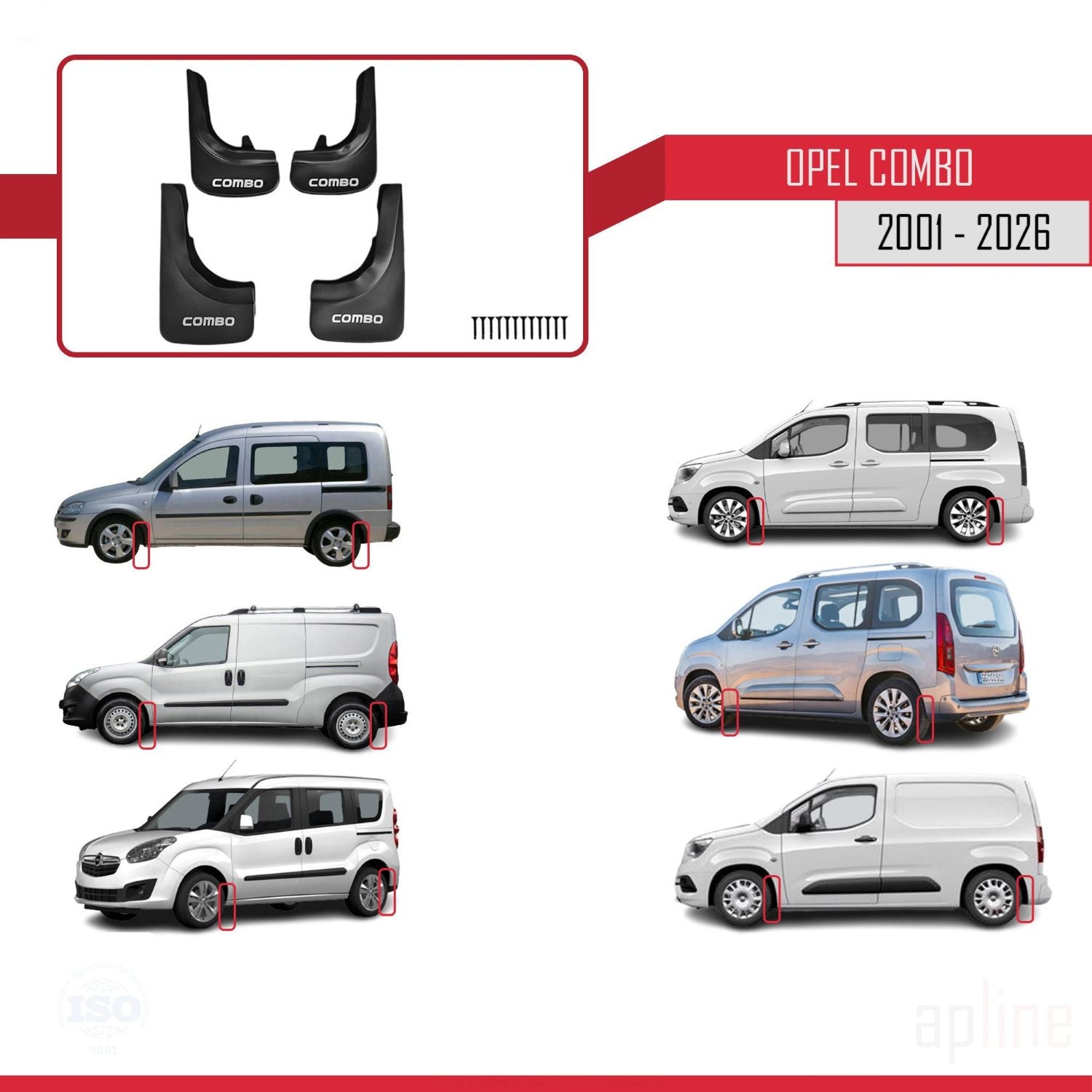 Opel Combo 2001-2026 Mudguards Vehicle Front Rear Set 4 Pcs Black