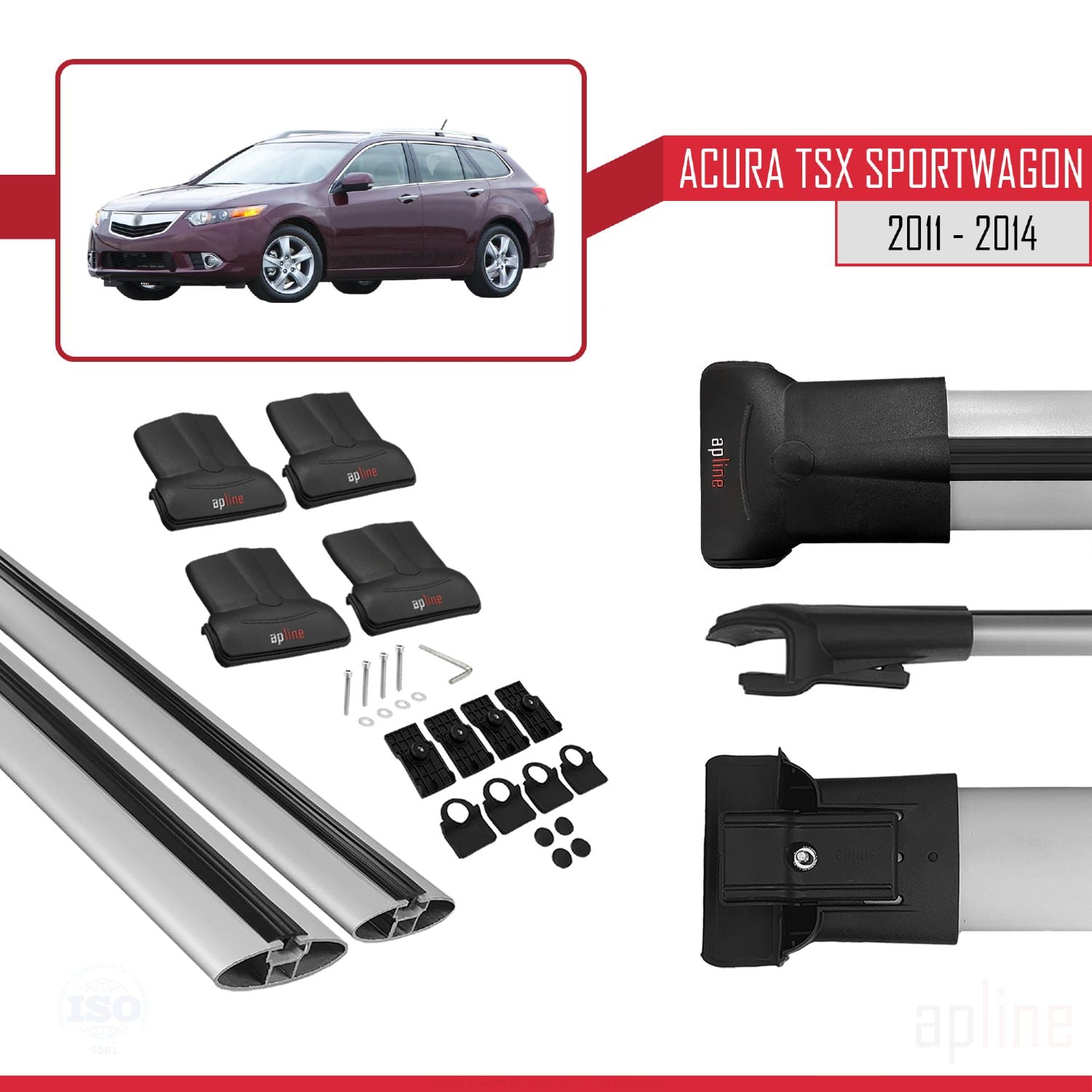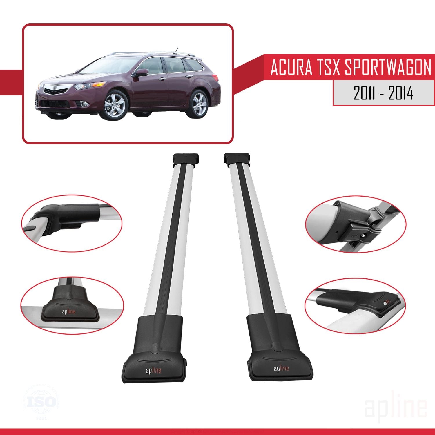 Acura TSX Sport Wagon 2011-2014 fly Model Car Roof Rack Cross Bar Grey Aluminium 2 Bars