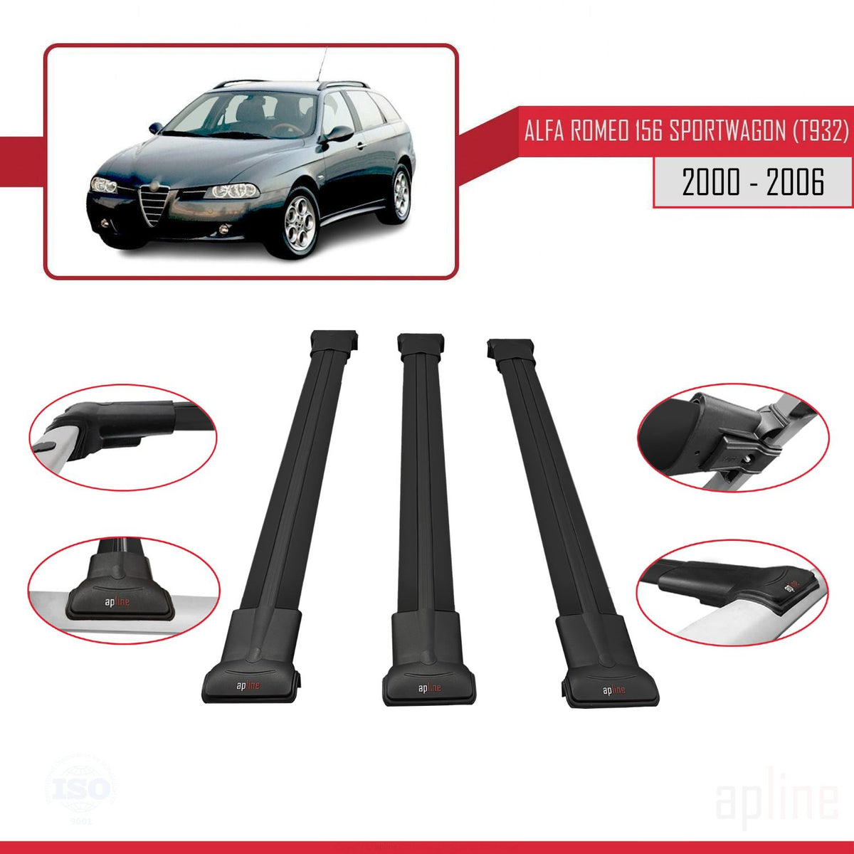 Alfa Romeo 156 (T932) SW 2000-2006 fly Model Car Roof Rack Cross Bar Black Aluminium 3 Bars