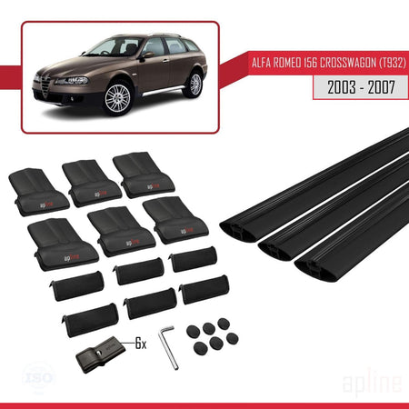 Alfa Romeo 156 (T932) Crosswagon 2003-2007 fly Model Car Roof Rack Cross Bar Black Aluminium 3 Bars