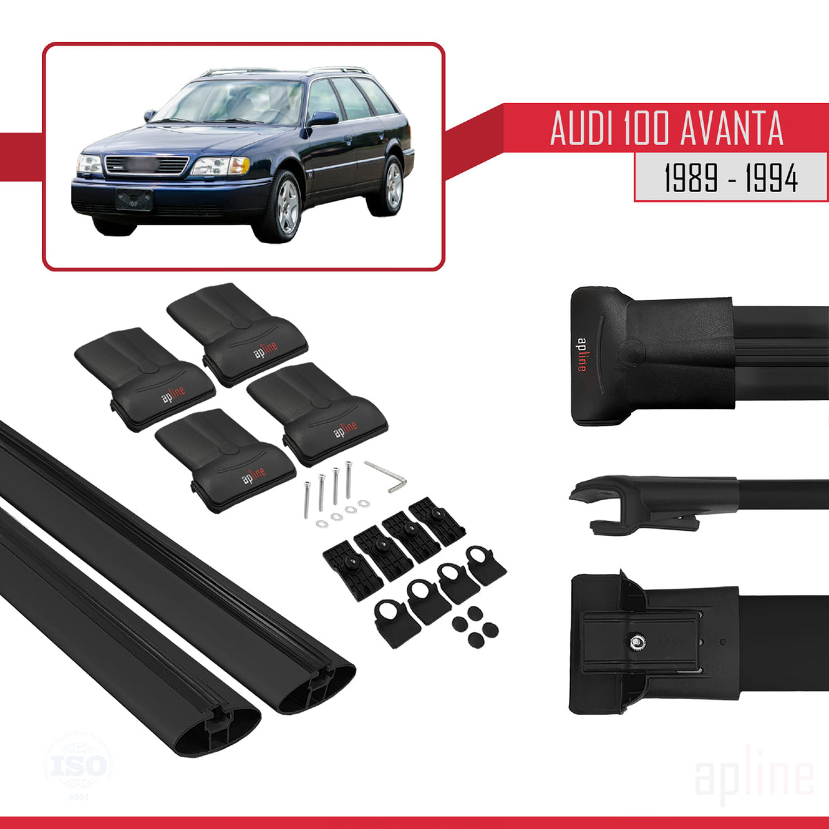 Audi 100 Avanta 1989-1994 fly Model Car Roof Rack Cross Bar Black Aluminium 2 Bars