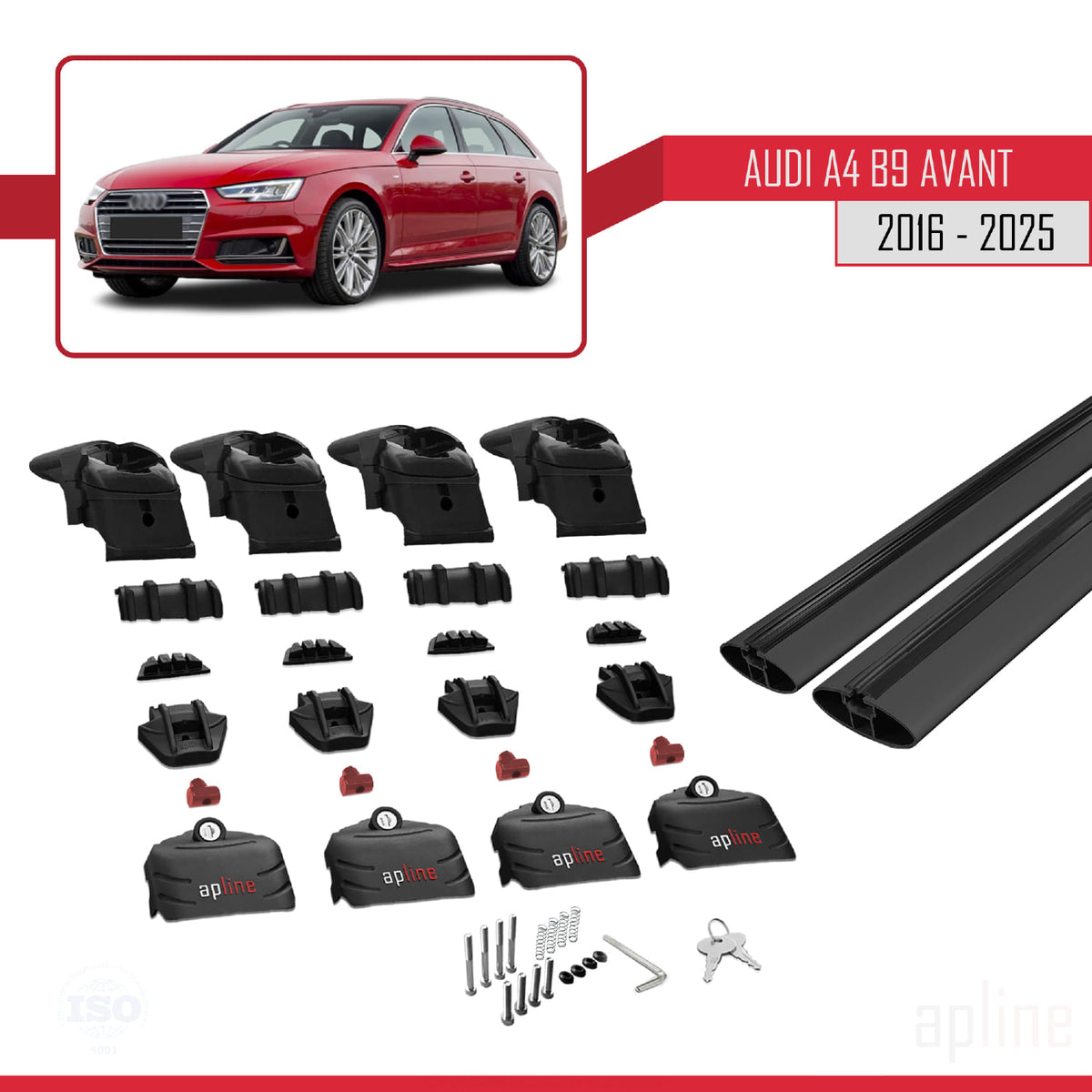 Audi A4 (B9) Avant 2016-2025 ace2 Car Roof Rack Cross Bar Black Aluminium 2 Bars