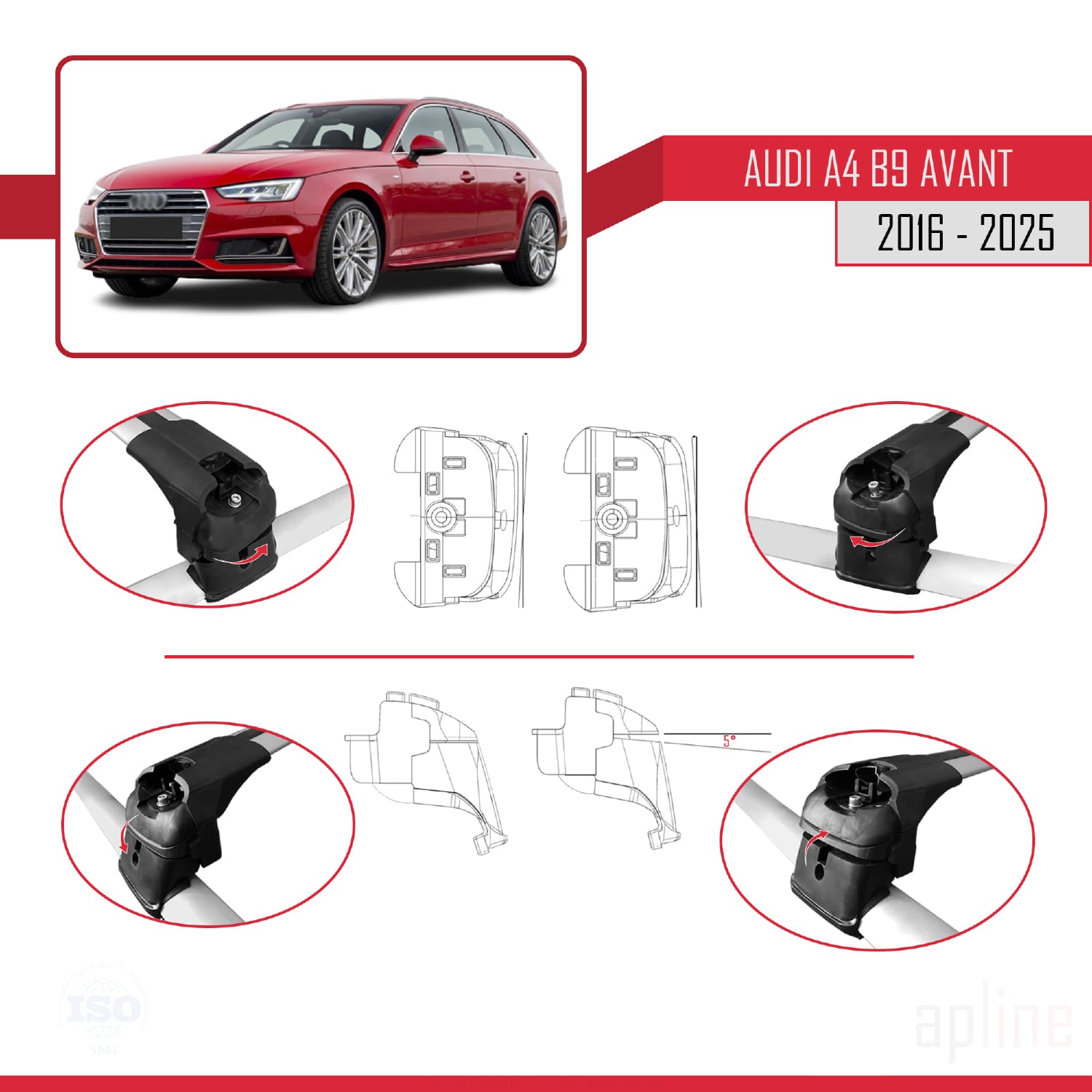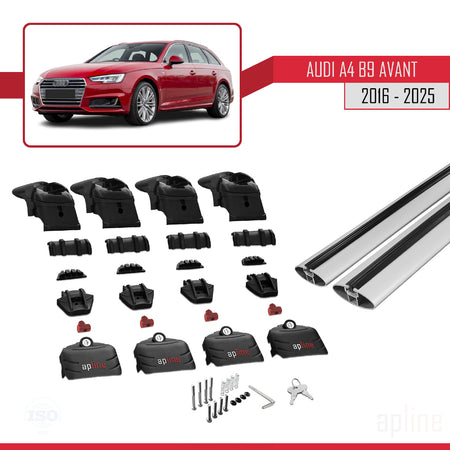 Audi A4 (B9) Avant 2016-2025 ace2 Car Roof Rack Cross Bar Grey Aluminium 2 Bars