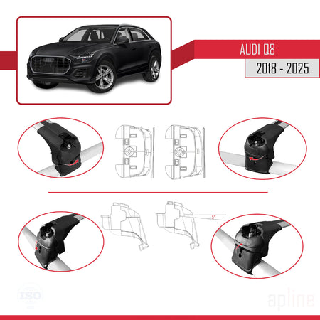Audi Q8 (F1) 2018-2025 ace2 Car Roof Rack Cross Bar Grey Aluminium 2 Bars