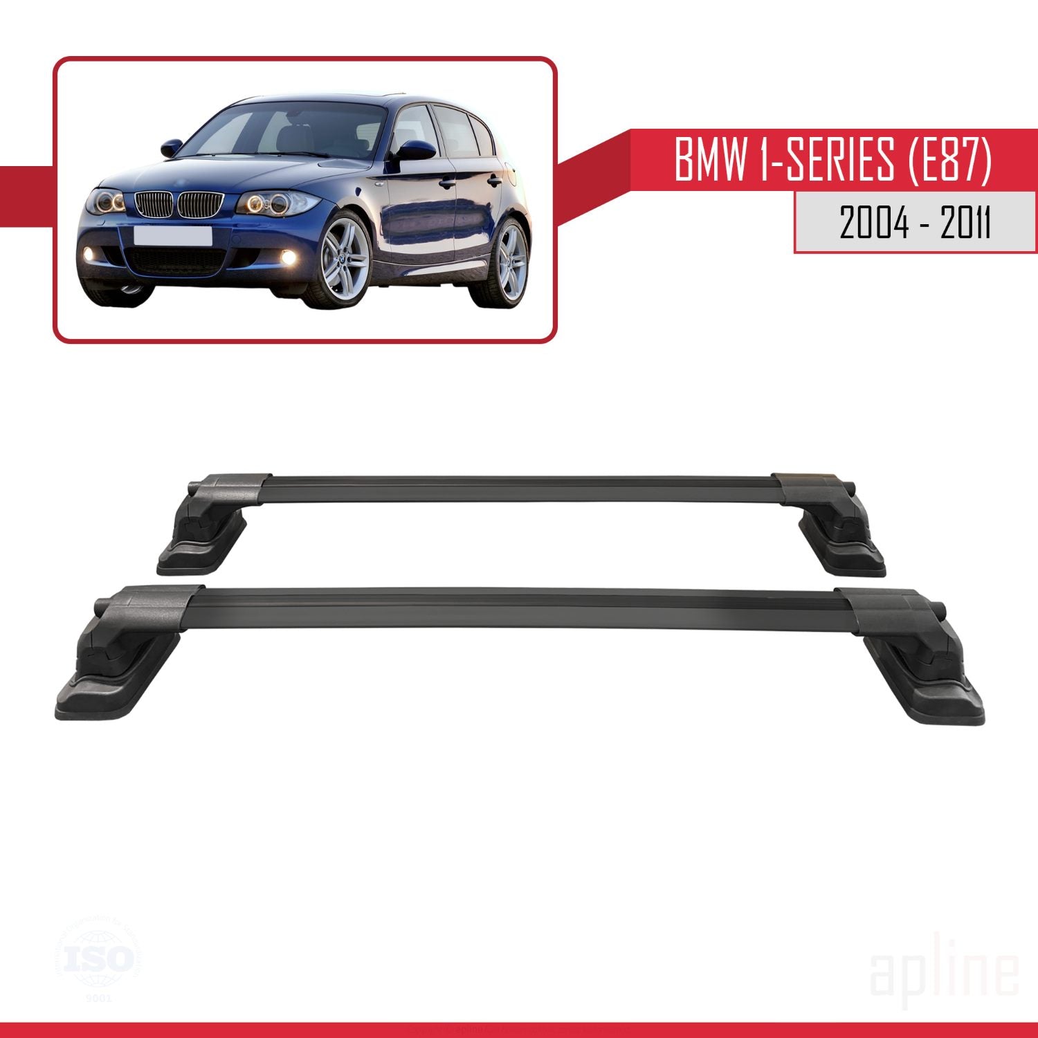 BMW 1 Series (E87) 2004-2011 ace3 Car Roof Rack Cross Bar Black Aluminium 2 Bars
