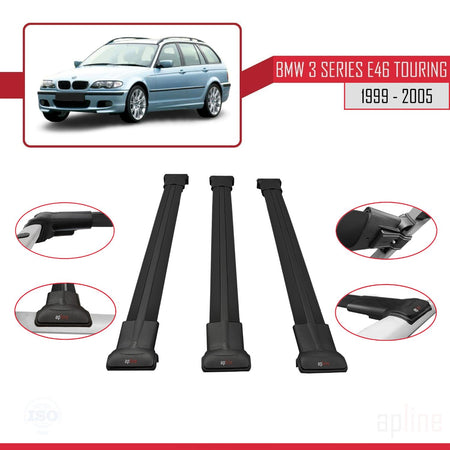 BMW 3 Series (E46) Touring 1999-2005 fly Model Car Roof Rack Cross Bar Black Aluminium 3 Bars
