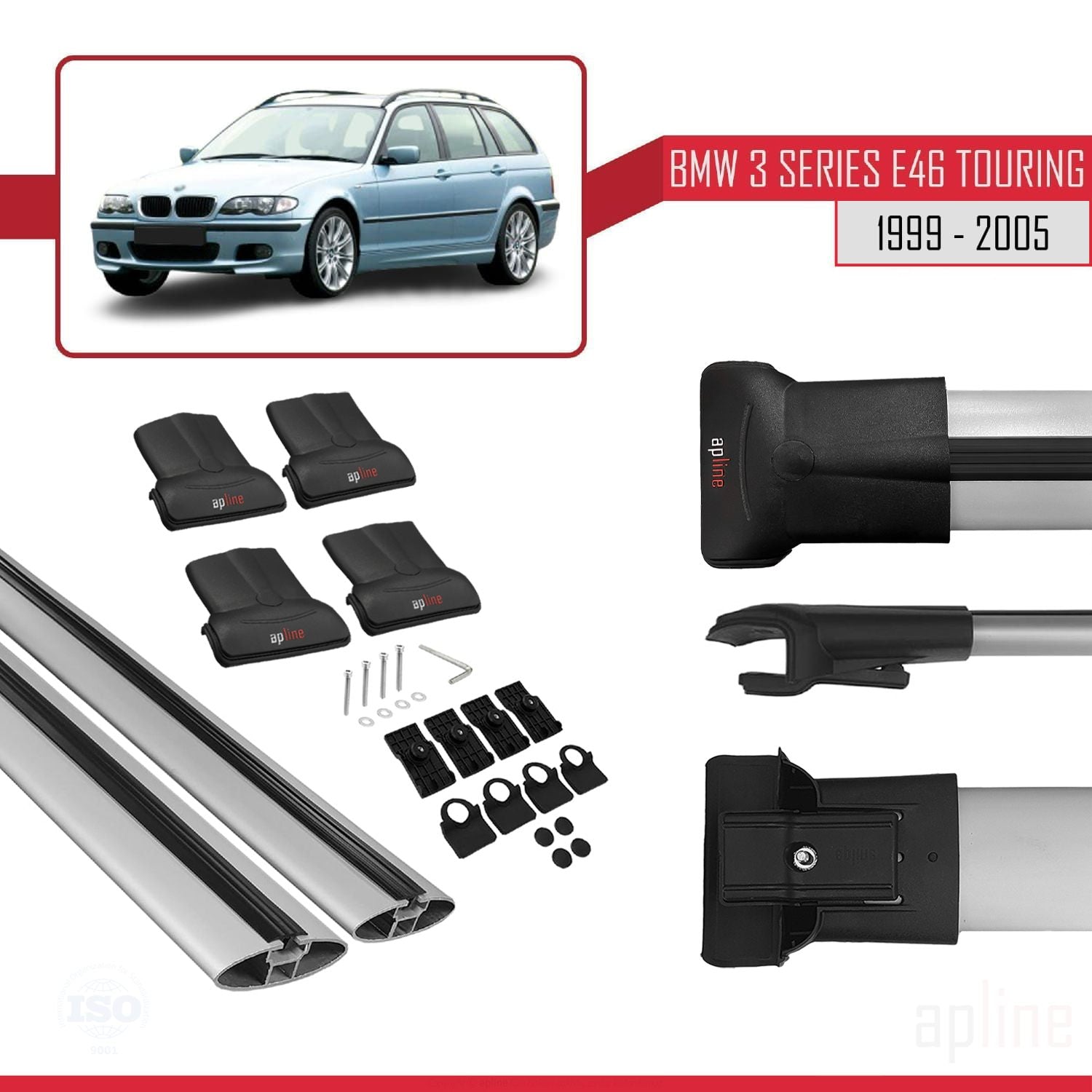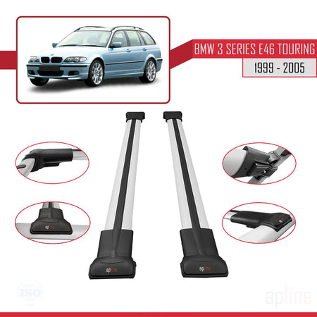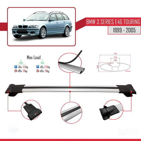 BMW 3 Series (E46) Touring 1999-2005 fly Model Car Roof Rack Cross Bar Grey Aluminium 2 Bars