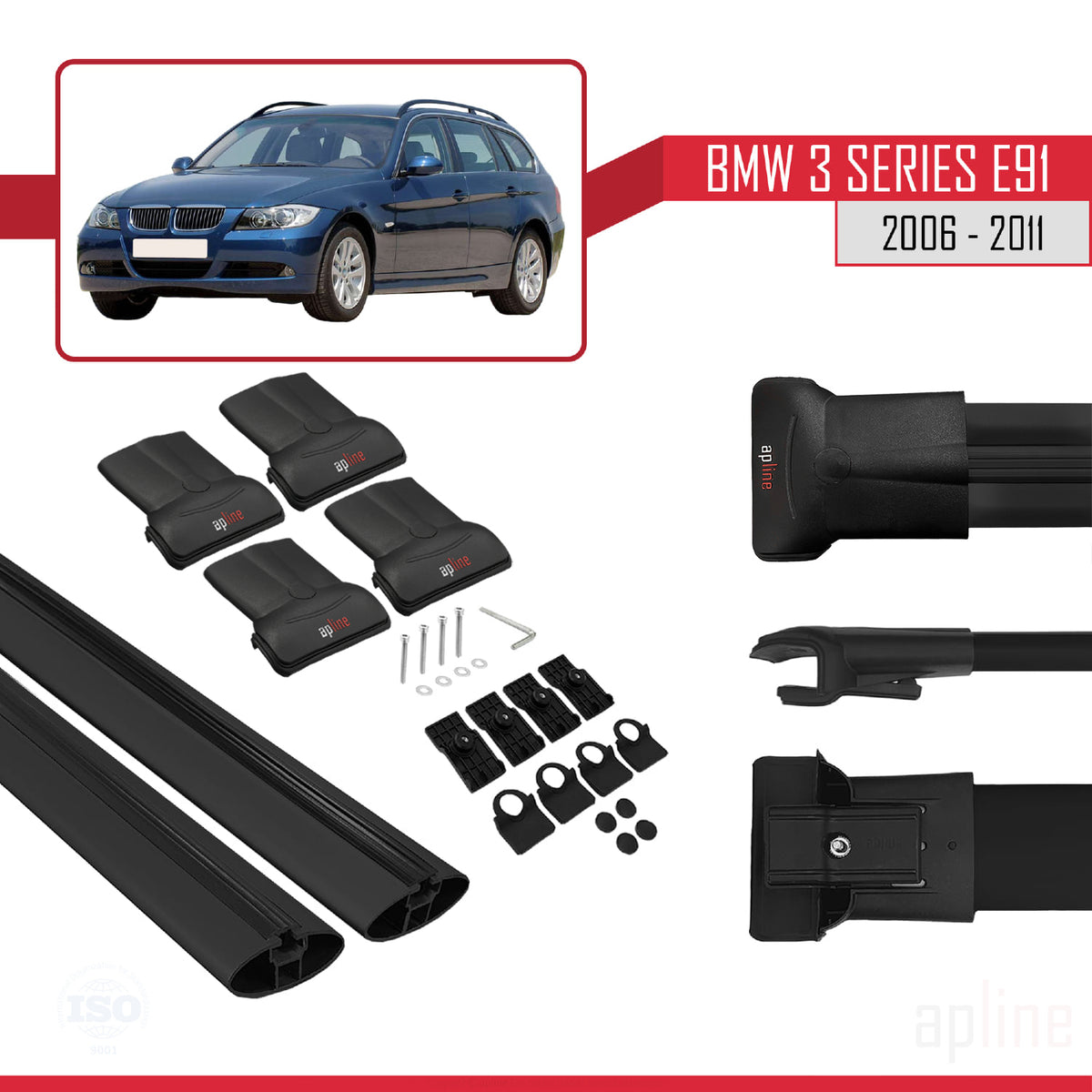 BMW 3 Series E91 Touring 2006-2011 fly Model Car Roof Rack Cross Bar Black Aluminium 2 Bars