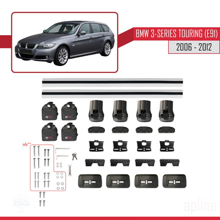 BMW 3 Series Touring (E91) 2006-2012 ace3 Car Roof Rack Cross Bar Grey Aluminium 2 Bars