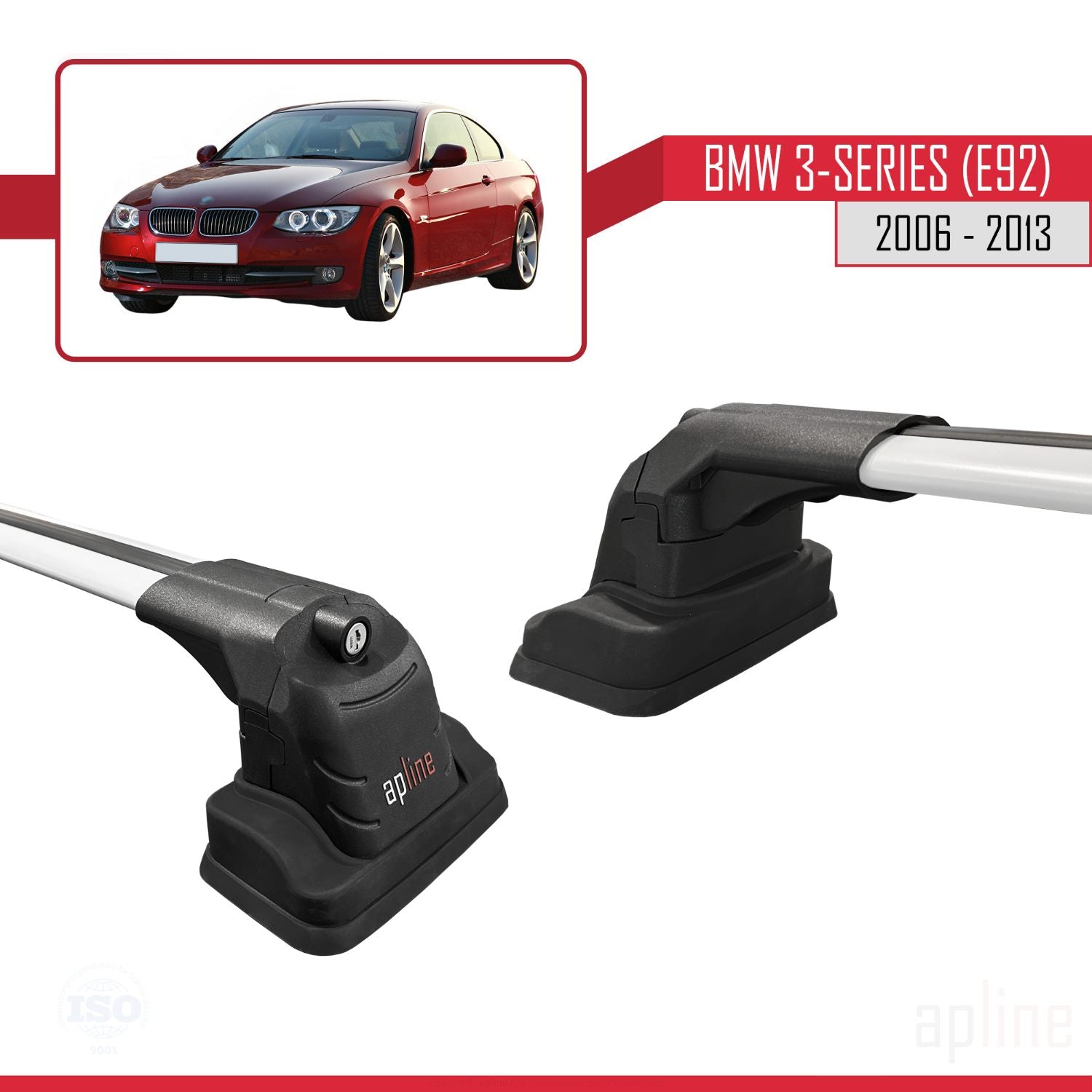 BMW 3 Series (E92) 2006-2013 ace3 Car Roof Rack Cross Bar Grey Aluminium 2 Bars