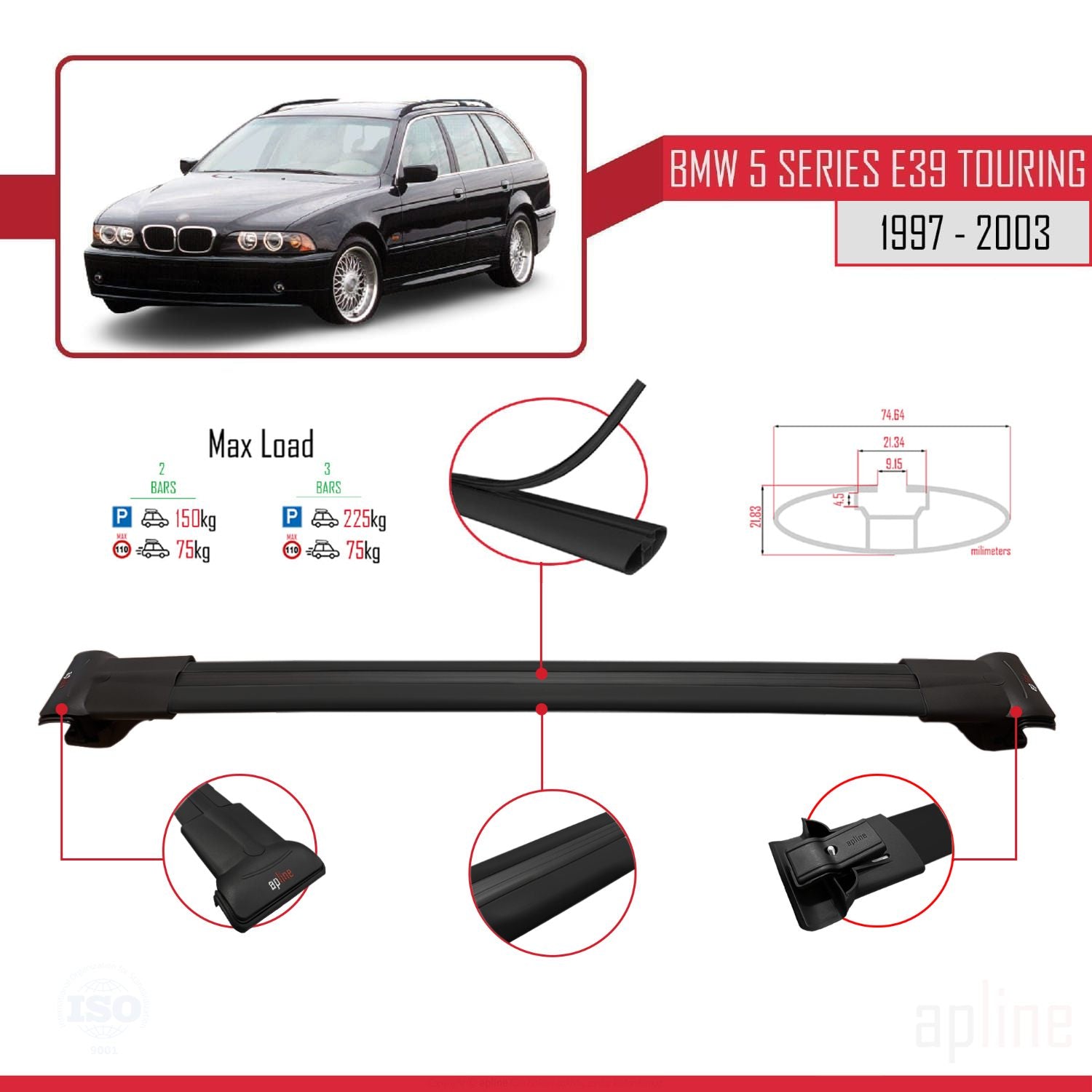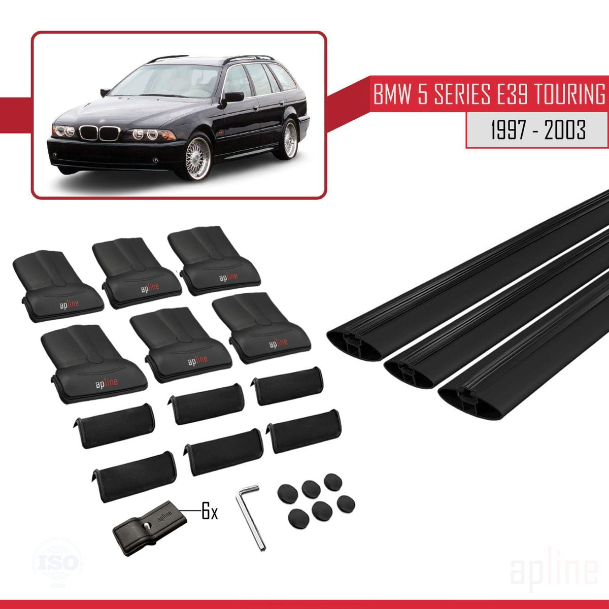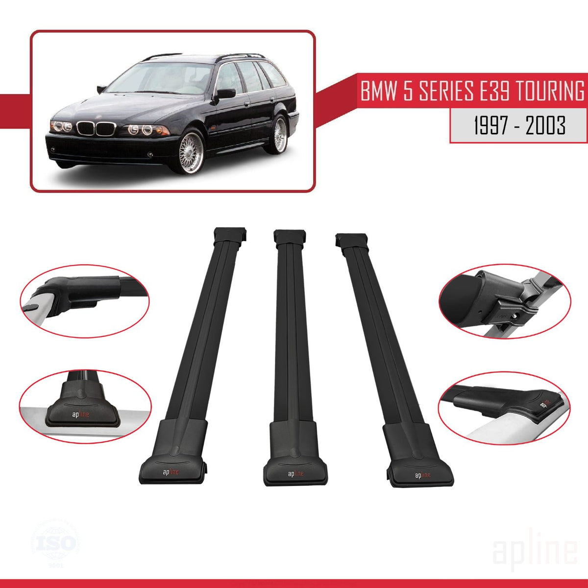 BMW 5 Series (E39) Touring 1997-2003 fly Model Car Roof Rack Cross Bar Black Aluminium 3 Bars