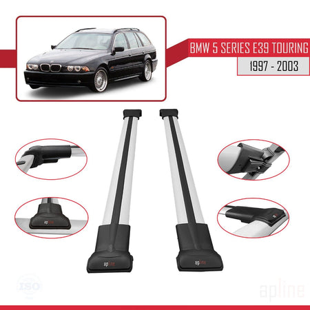 BMW 5 Series (E39) Touring 1997-2003 fly Model Car Roof Rack Cross Bar Grey Aluminium 2 Bars