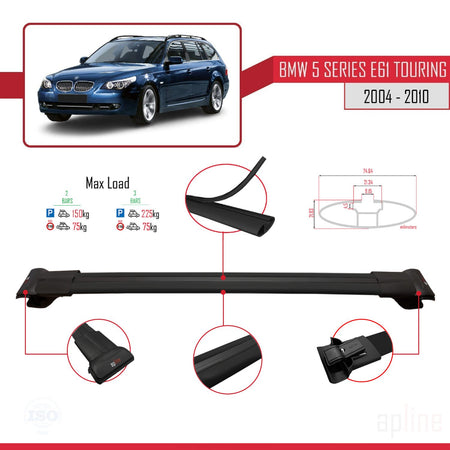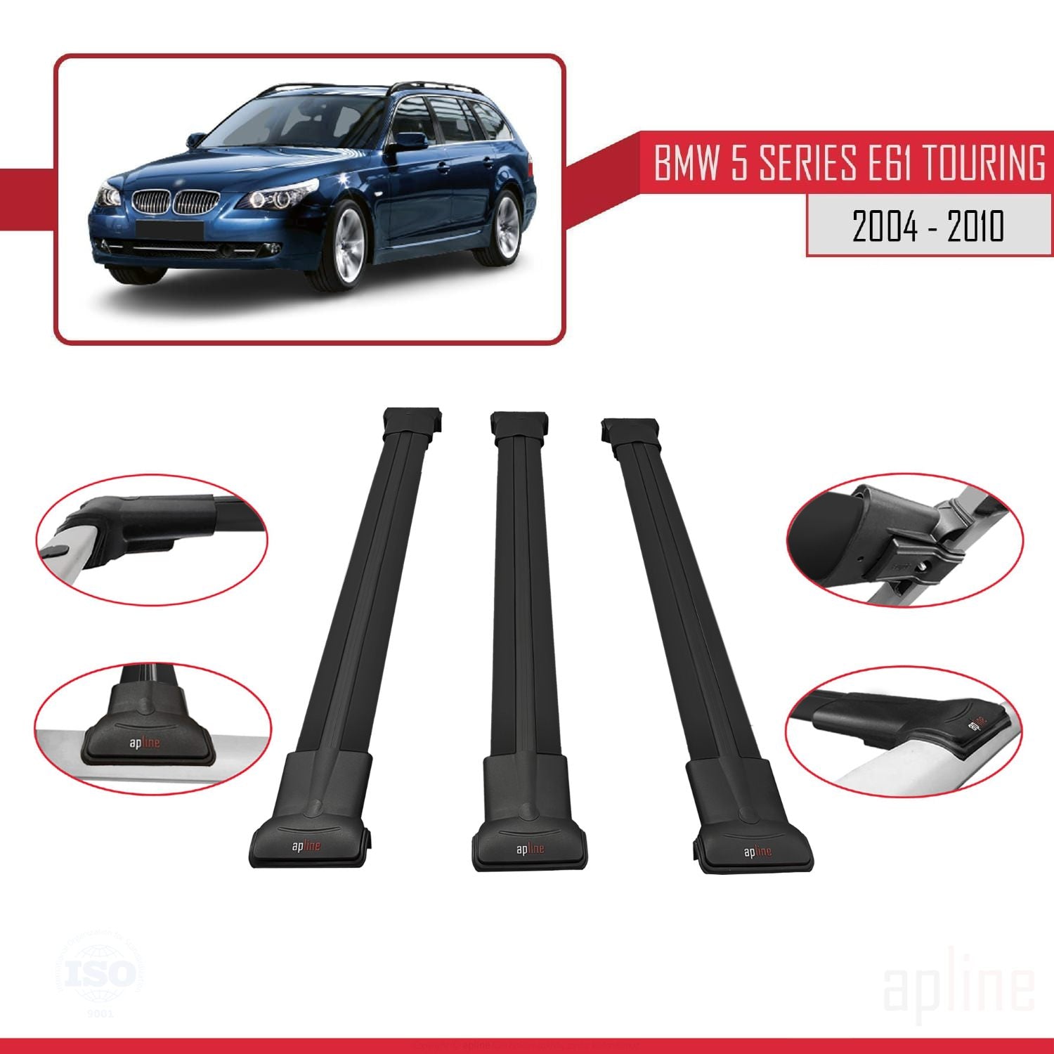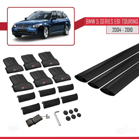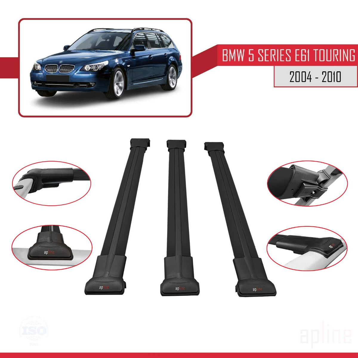 BMW 5 Series (E61) Touring 2004-2010 fly Model Car Roof Rack Cross Bar Black Aluminium 3 Bars