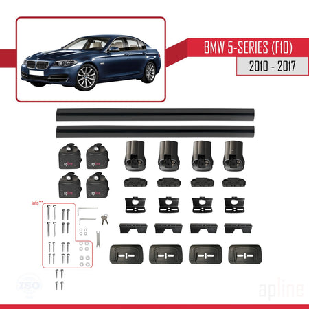 BMW 5 Series (F10) 2010-2017 ace3 Car Roof Rack Cross Bar Black Aluminium 2 Bars