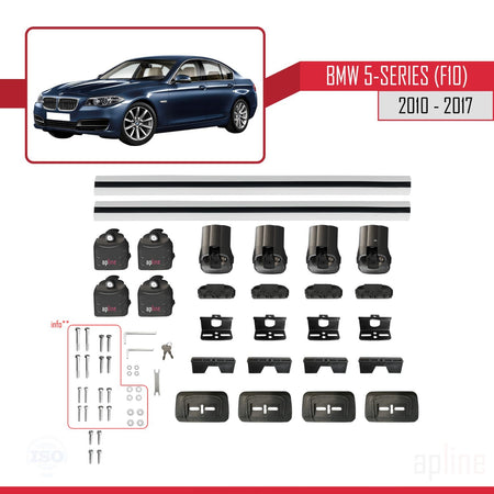 BMW 5 Series (F10) 2010-2017 ace3 Car Roof Rack Cross Bar Grey Aluminium 2 Bars