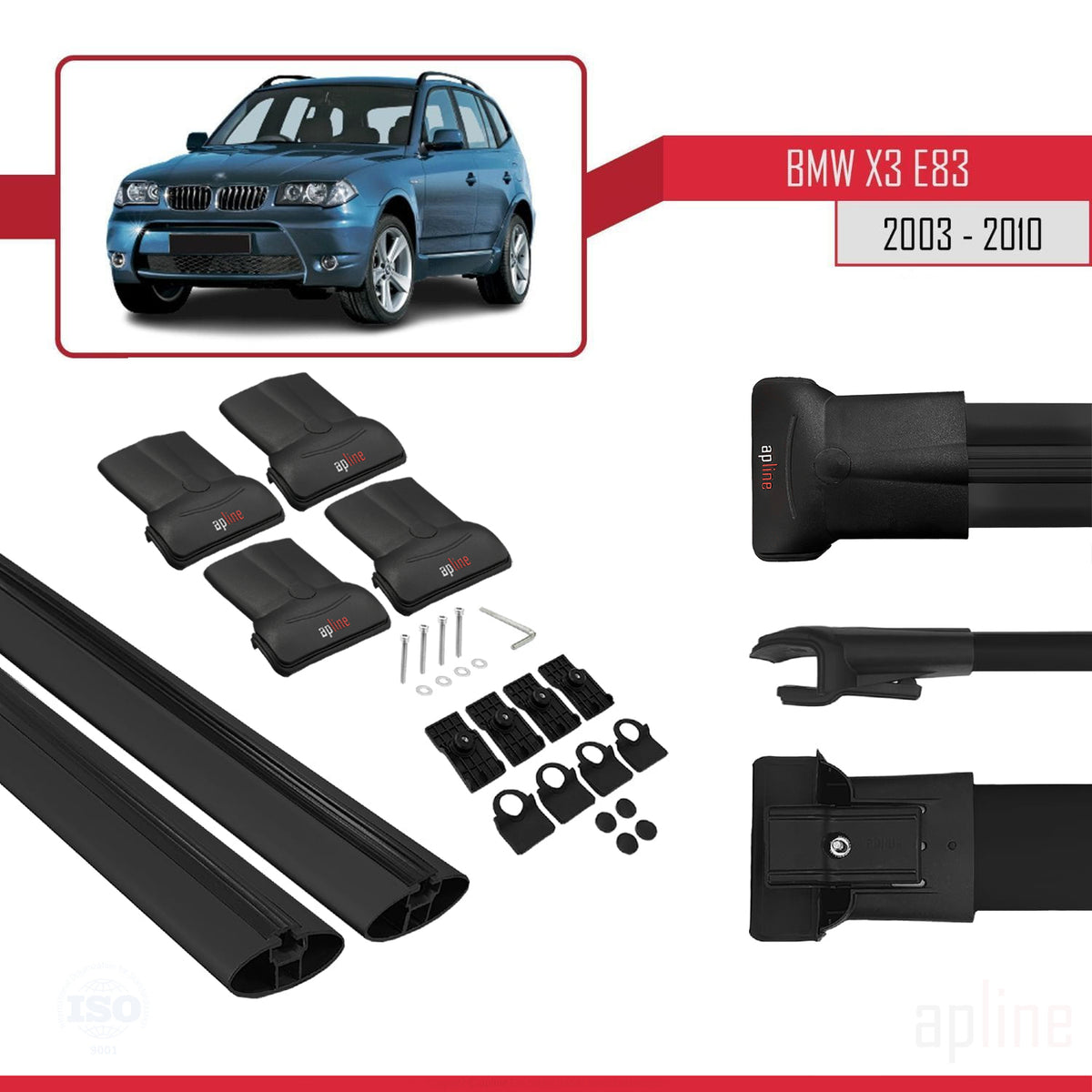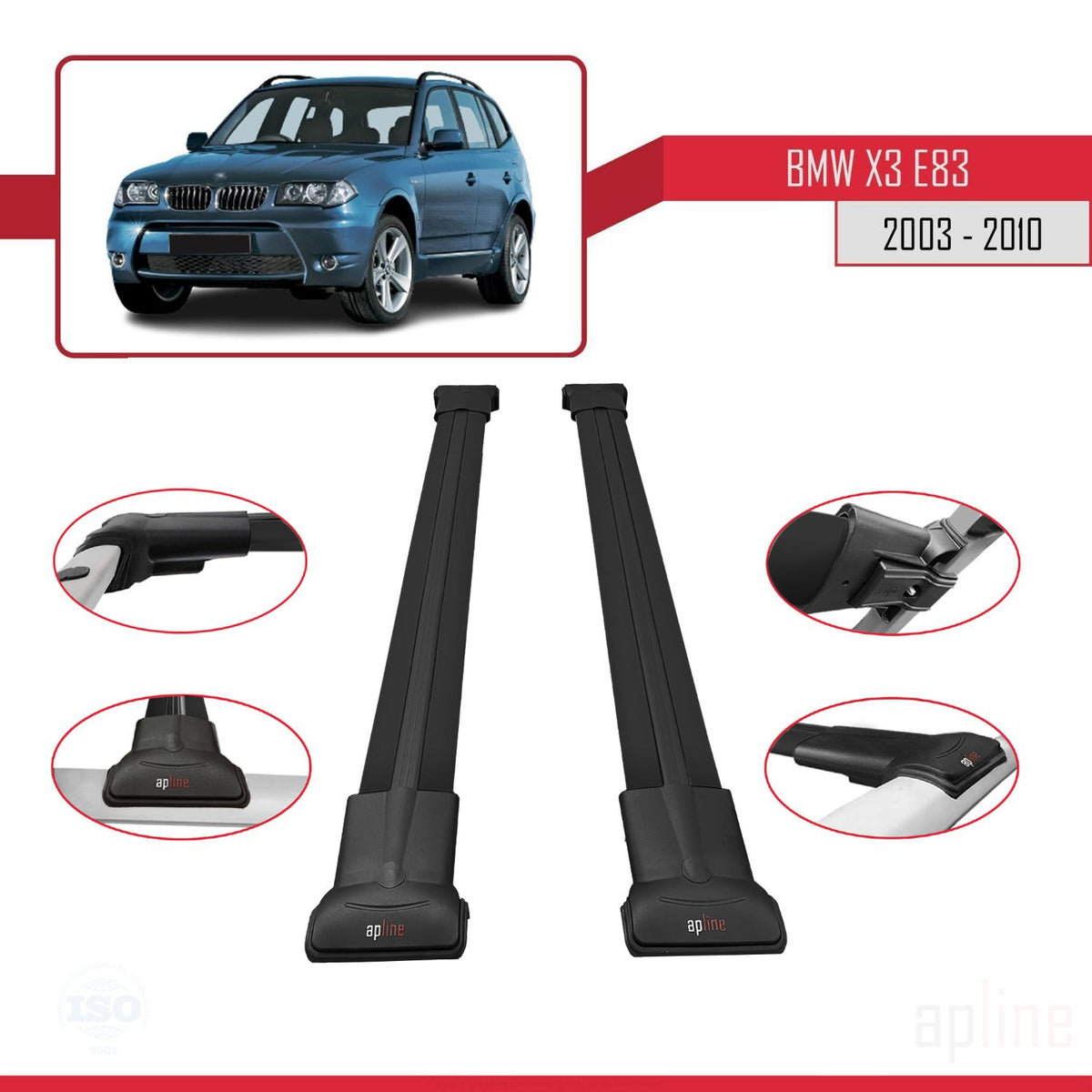 BMW X3 (E83) 2003-2010 fly Model Car Roof Rack Cross Bar Black Aluminium 2 Bars