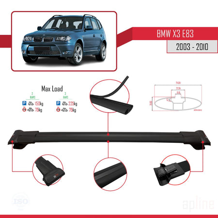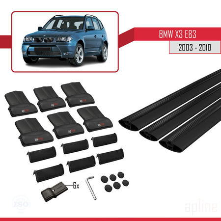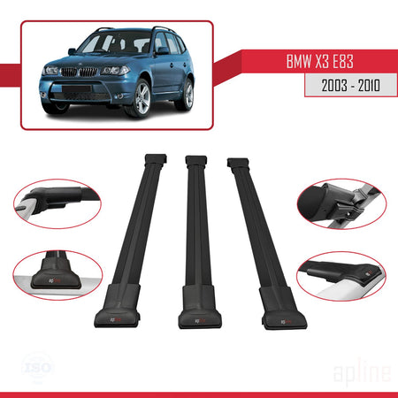 BMW X3 (E83) 2003-2010 fly Model Car Roof Rack Cross Bar Black Aluminium 3 Bars