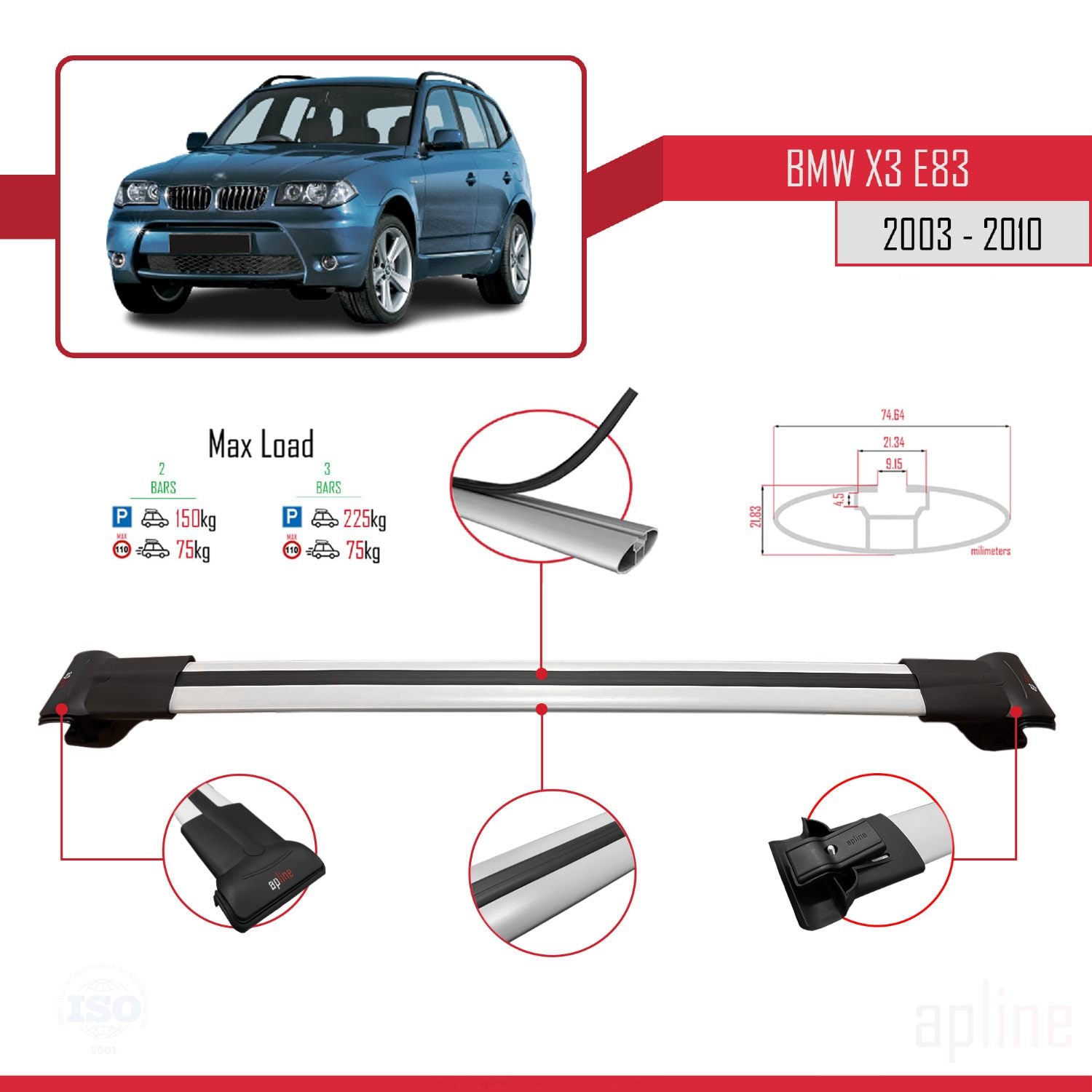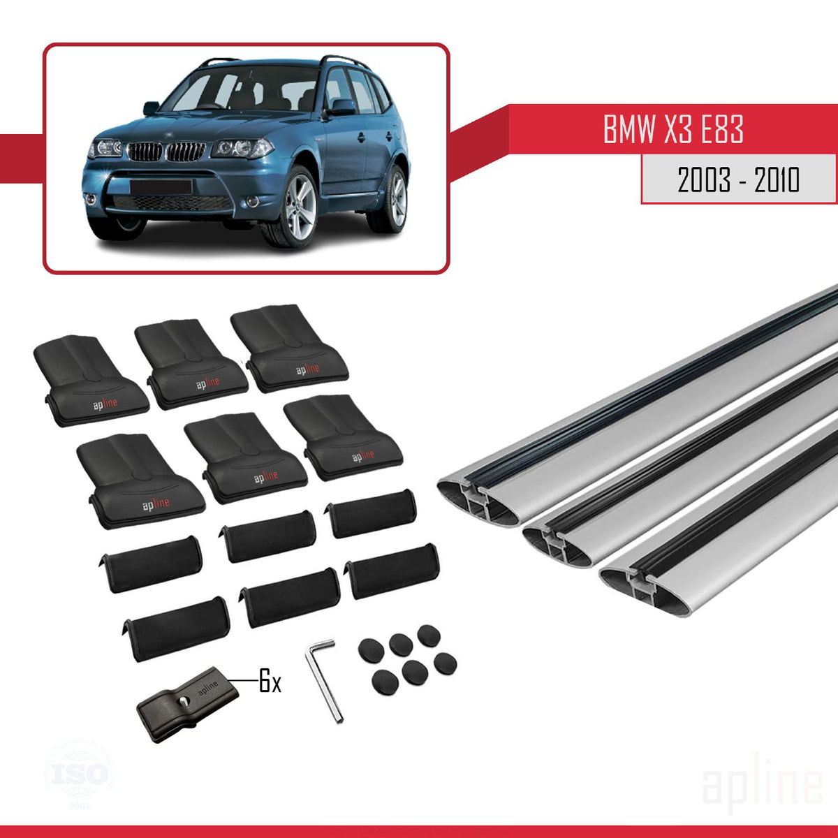 BMW X3 (E83) 2003-2010 fly Model Car Roof Rack Cross Bar Grey Aluminium 3 Bars