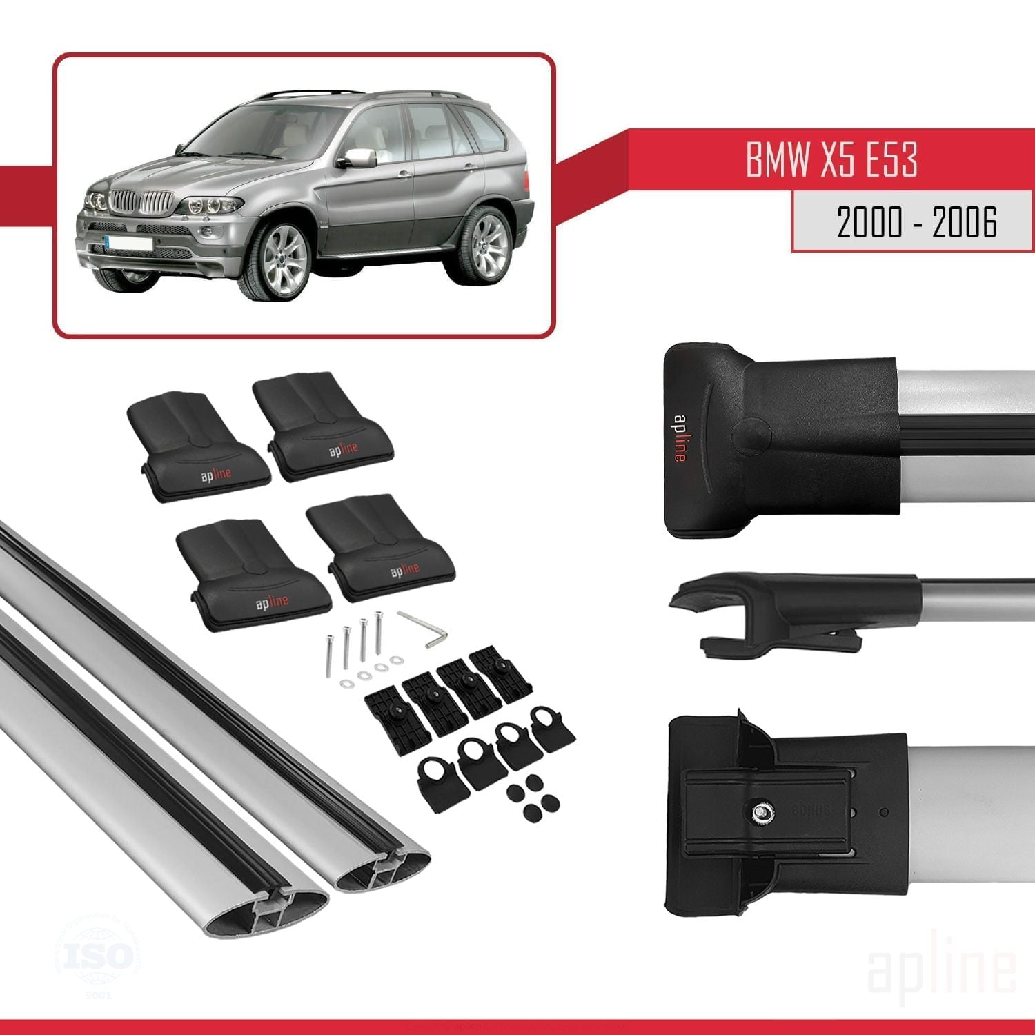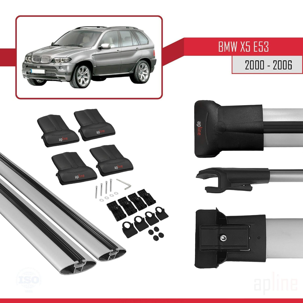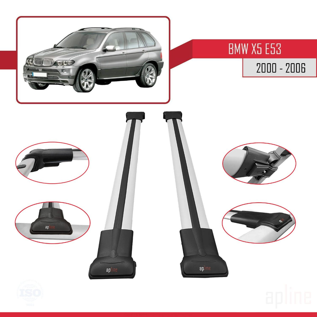 BMW X5 (E53) 2000-2006 fly Model Car Roof Rack Cross Bar Grey Aluminium 2 Bars