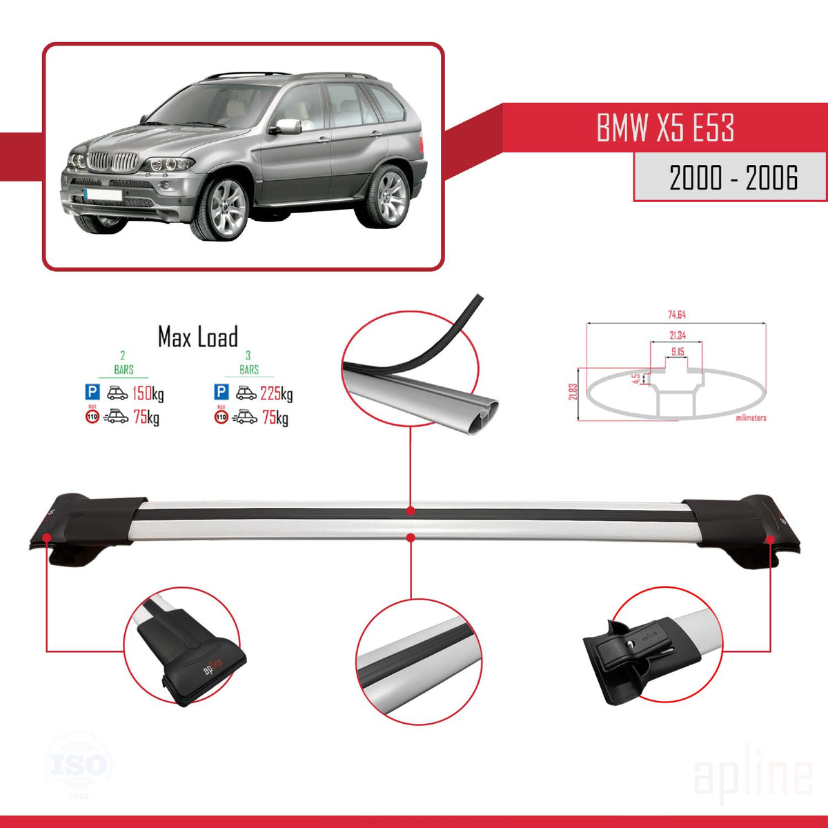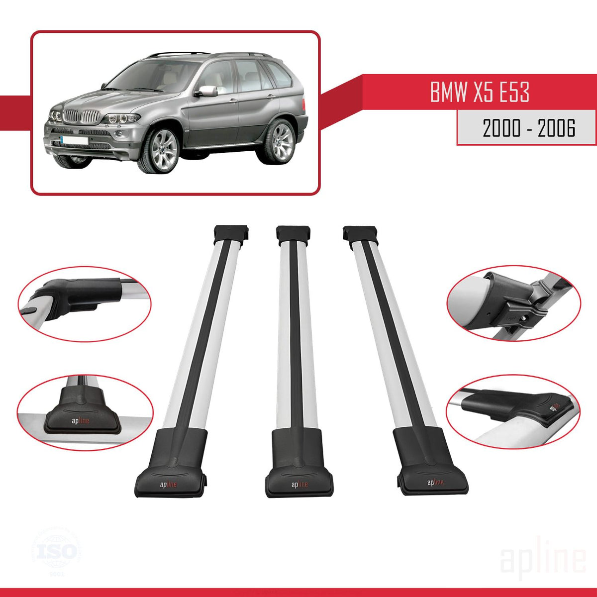 BMW X5 (E53) 2000-2006 fly Model Car Roof Rack Cross Bar Grey Aluminium 3 Bars