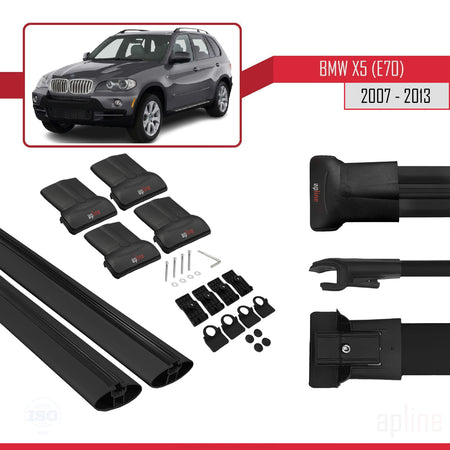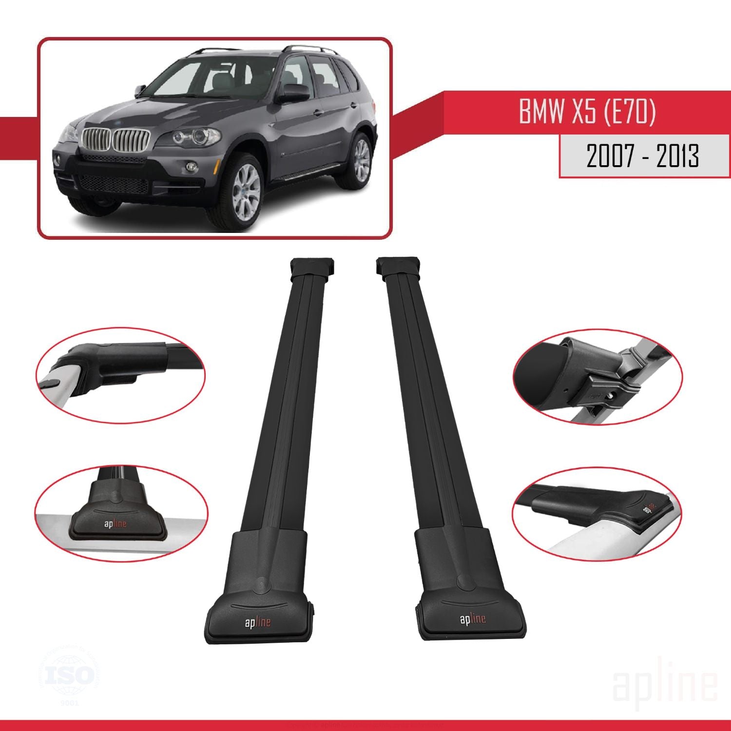 BMW X5 (E70) 2007-2013 fly Model Car Roof Rack Cross Bar Black Aluminium 2 Bars