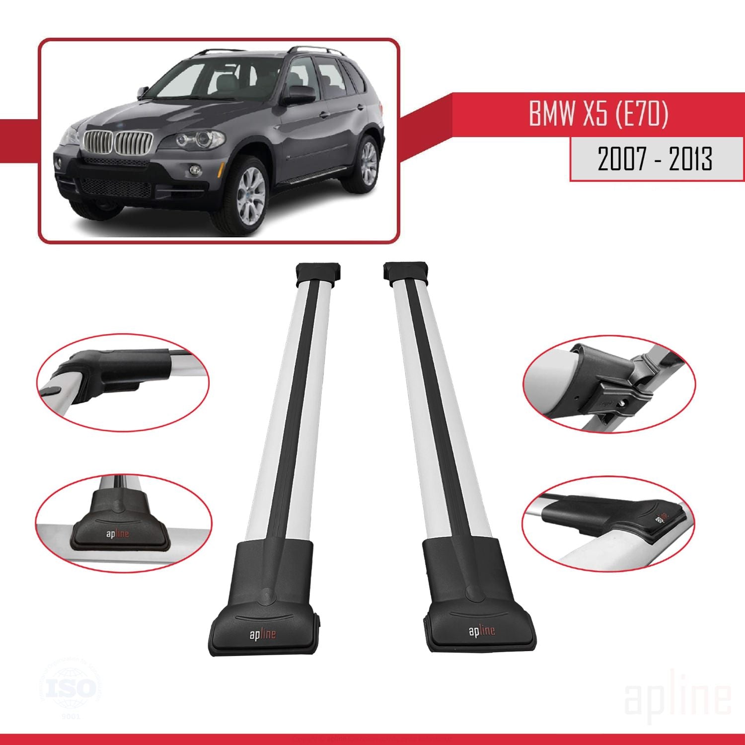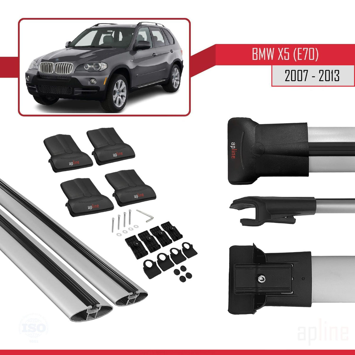 BMW X5 (E70) 2007-2013 fly Model Car Roof Rack Cross Bar Grey Aluminium 2 Bars