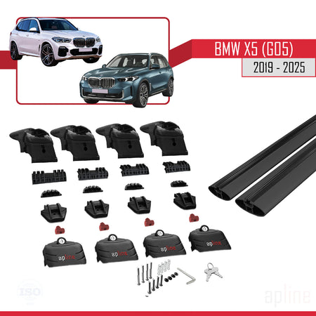 BMW X5 (G05) 2019-2025 ace2 Car Roof Rack Cross Bar Black Aluminium 2 Bars