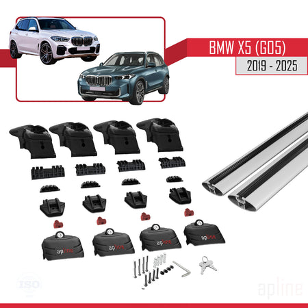 BMW X5 (G05) 2019-2025 ace2 Car Roof Rack Cross Bar Grey Aluminium 2 Bars