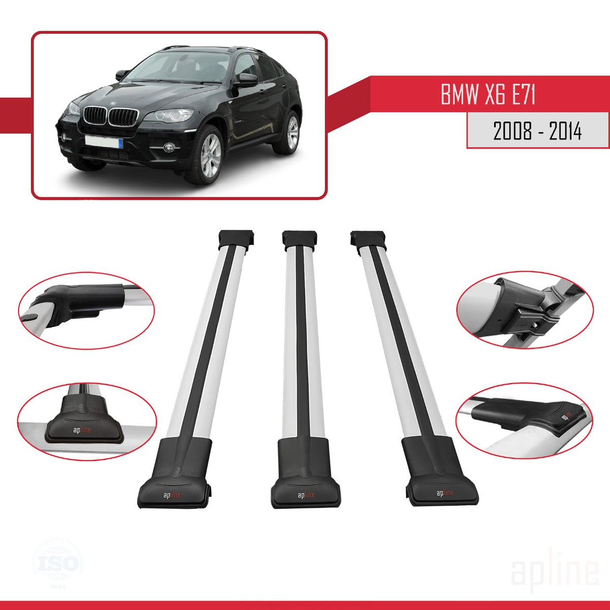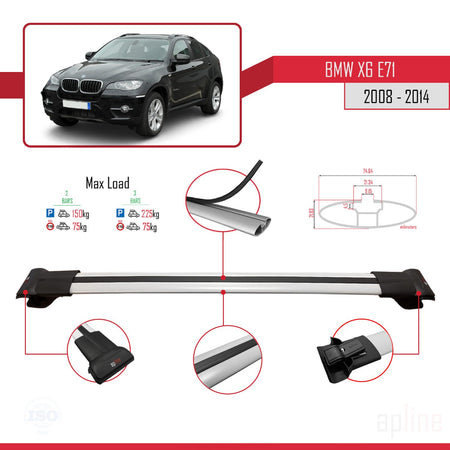 BMW X6 (E71) 2008-2014 fly Model Car Roof Rack Cross Bar Grey Aluminium 3 Bars