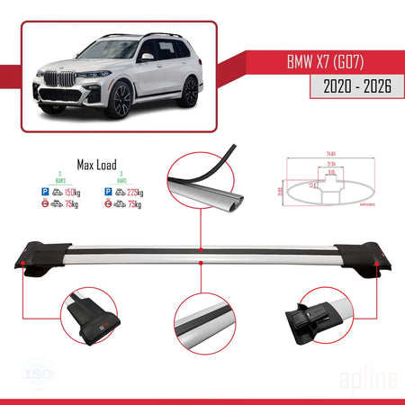 BMW X7 (G07) 2020-2025 fly Model Car Roof Rack Cross Bar Grey Aluminium 3 Bars