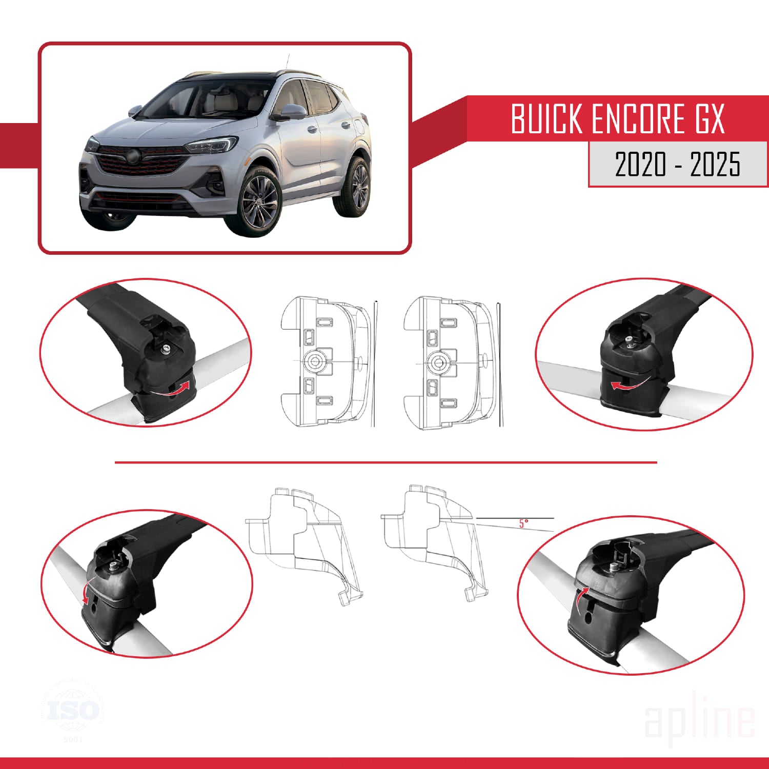 Buick Encore GX 2020-2025 ace2 Car Roof Rack Cross Bar Black Aluminium 2 Bars