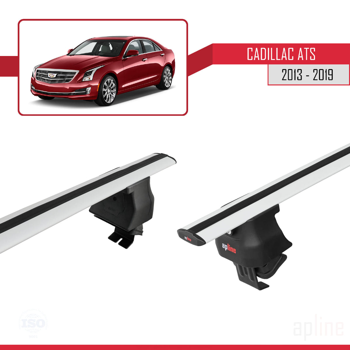 Cadillac ATS 2013-2019 ace4 Car Roof Rack Cross Bar Grey Aluminium 2 Bars