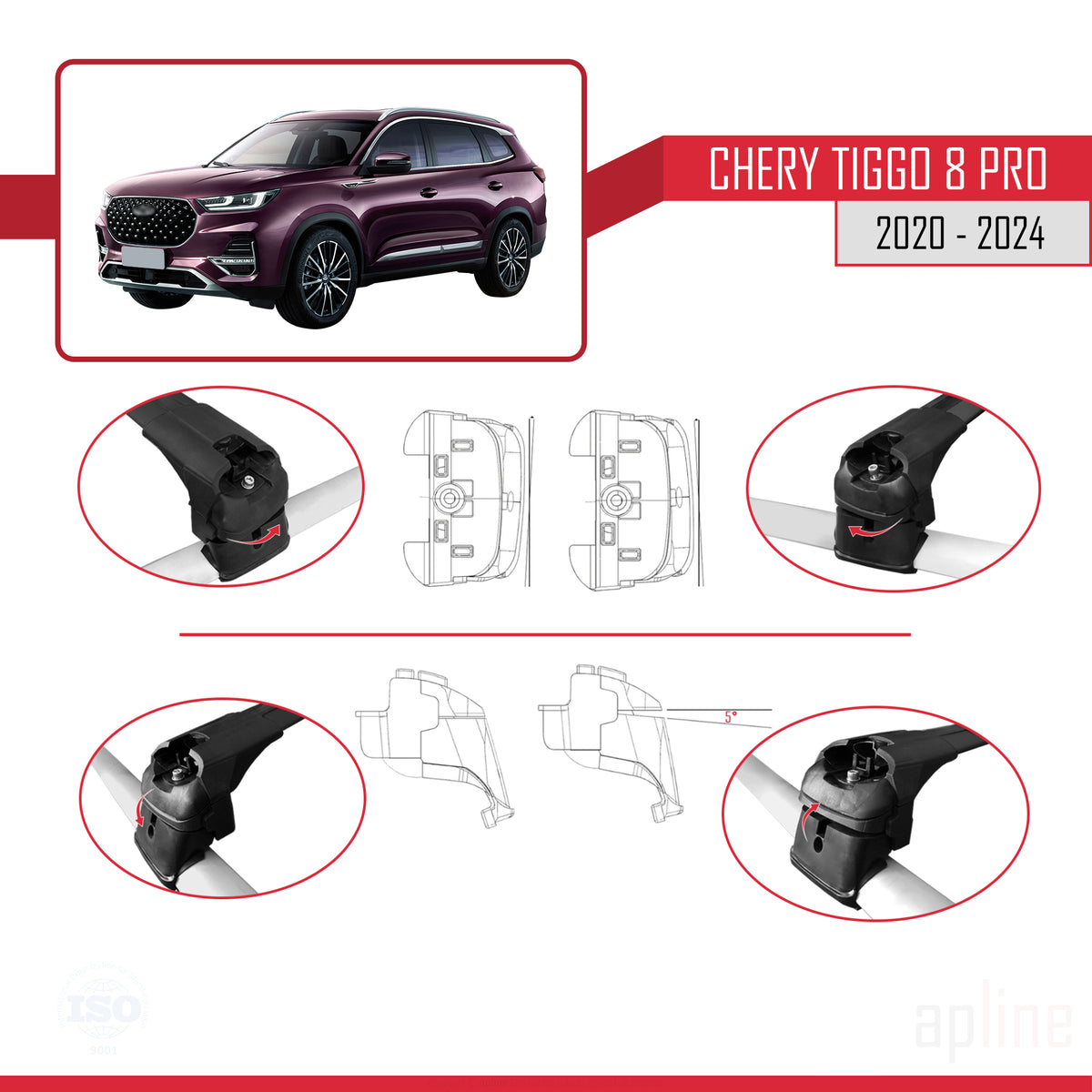 Chery Tiggo 8 Pro 2020-2024 ace2 Car Roof Rack Cross Bar Black Aluminium 2 Bars