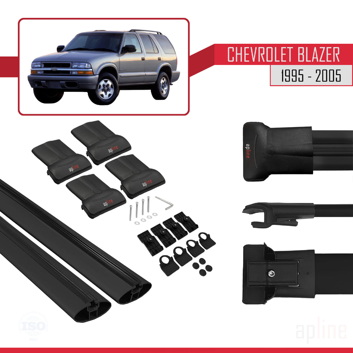 Chevrolet Blazer 1995-2005 fly Model Car Roof Rack Cross Bar Black Aluminium 2 Bars