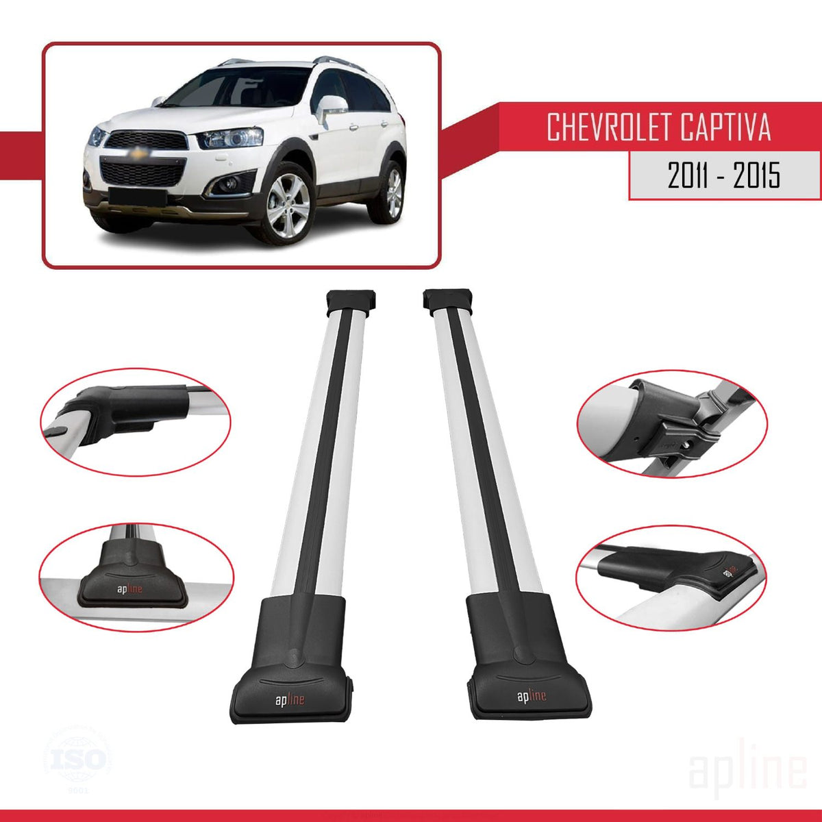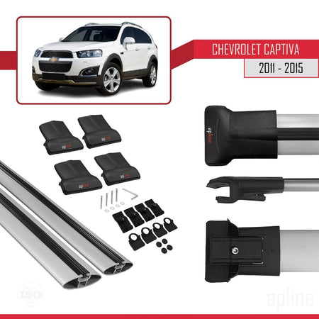 Chevrolet Captiva 2011-2015 fly Model Car Roof Rack Cross Bar Grey Aluminium 2 Bars