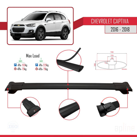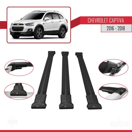 Chevrolet Captiva 2016-2018 fly Model Car Roof Rack Cross Bar Black Aluminium 3 Bars