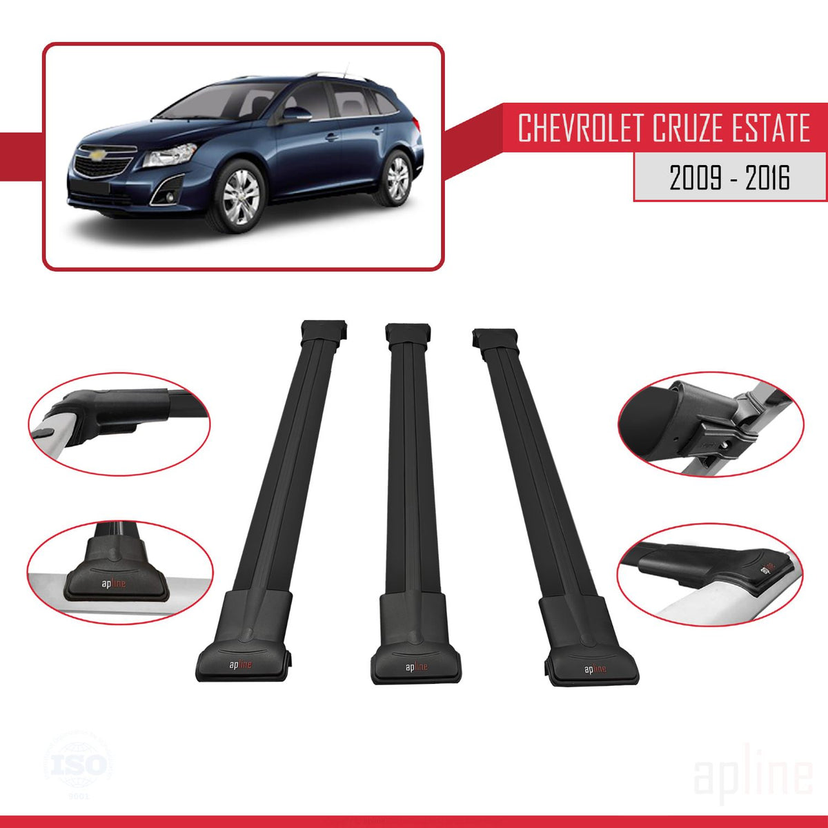 Chevrolet Cruze (J300) 2009-2016 fly Model Car Roof Rack Cross Bar Black Aluminium 3 Bars