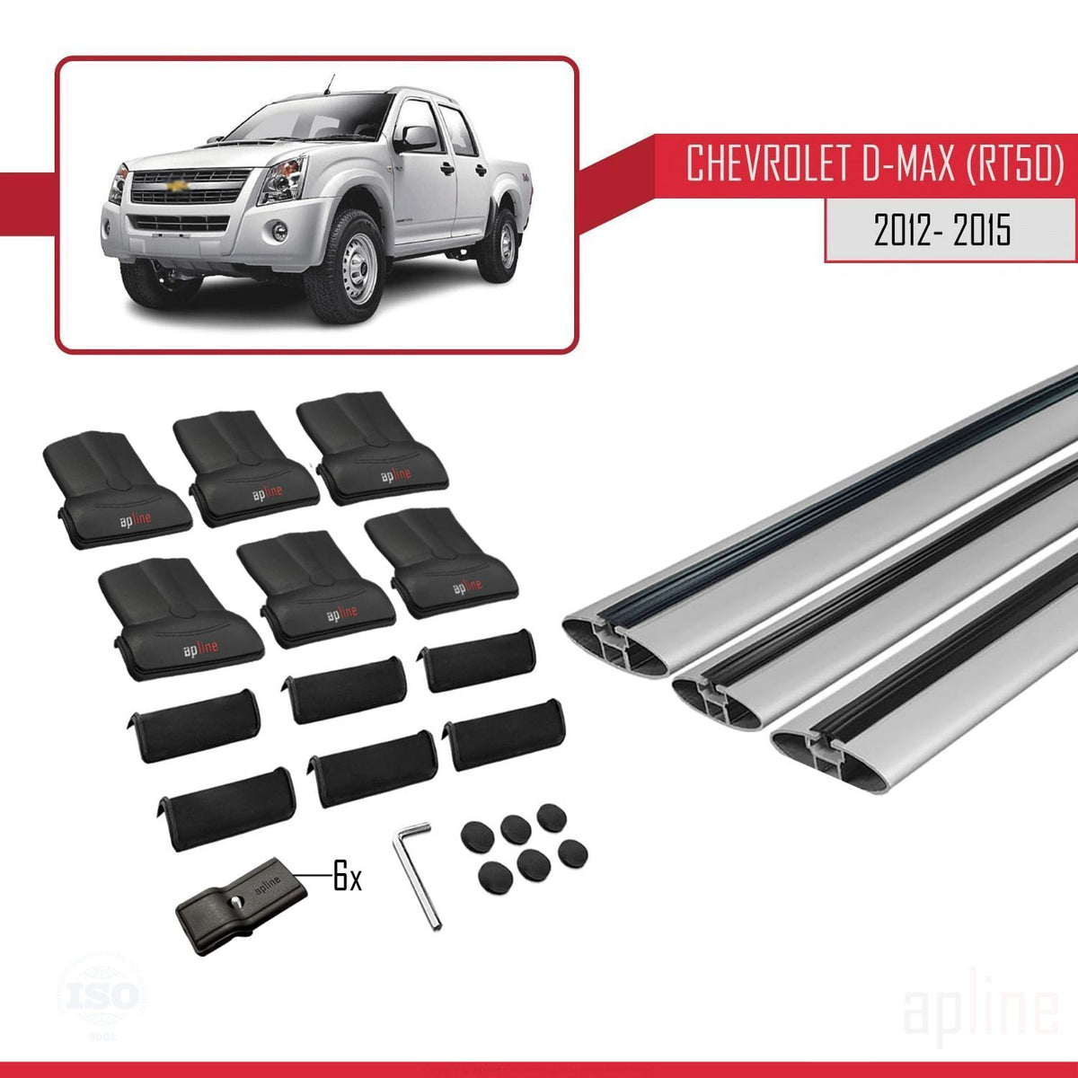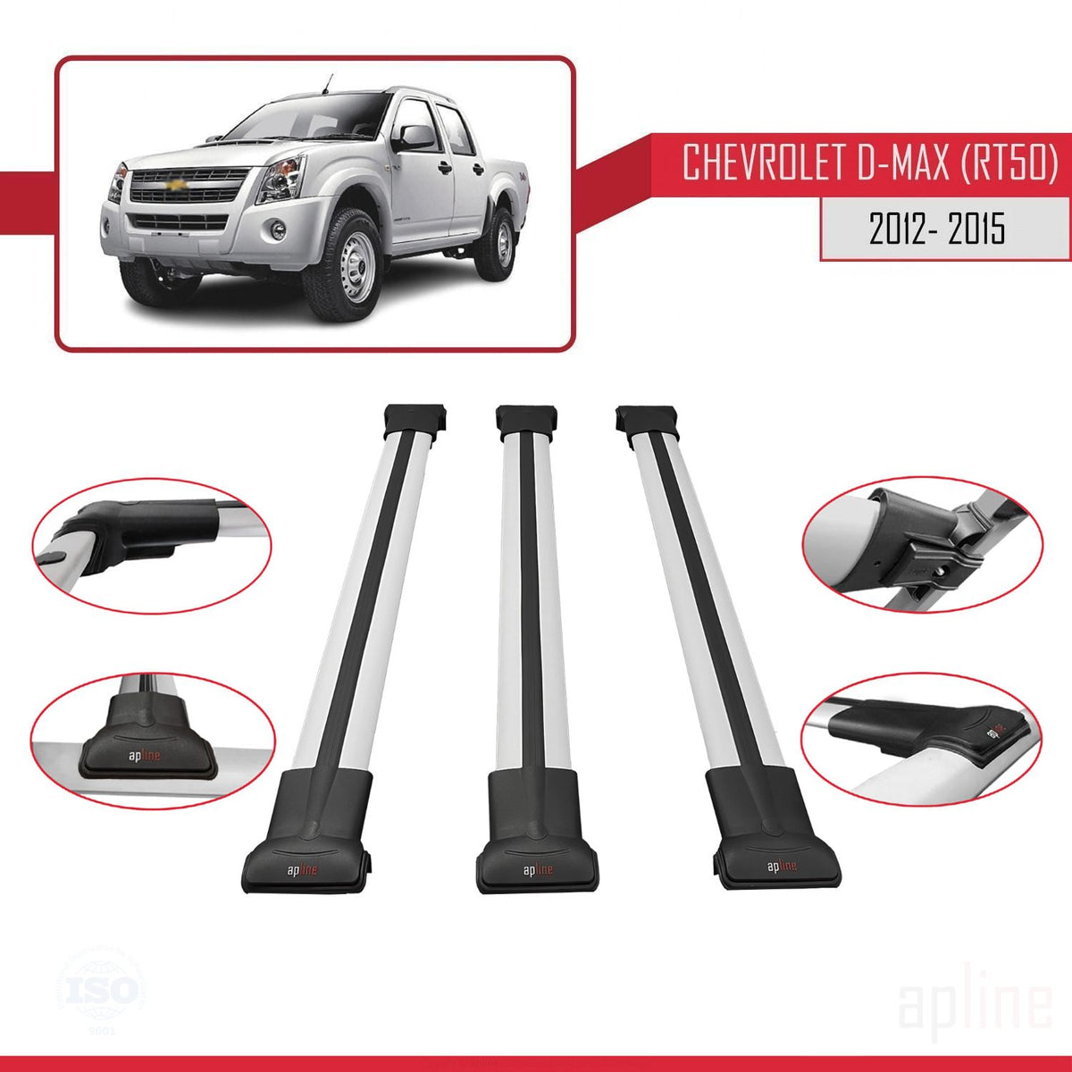 Chevrolet D-Max (RT50) 2012-2015 fly Model Car Roof Rack Cross Bar Grey Aluminium 3 Bars