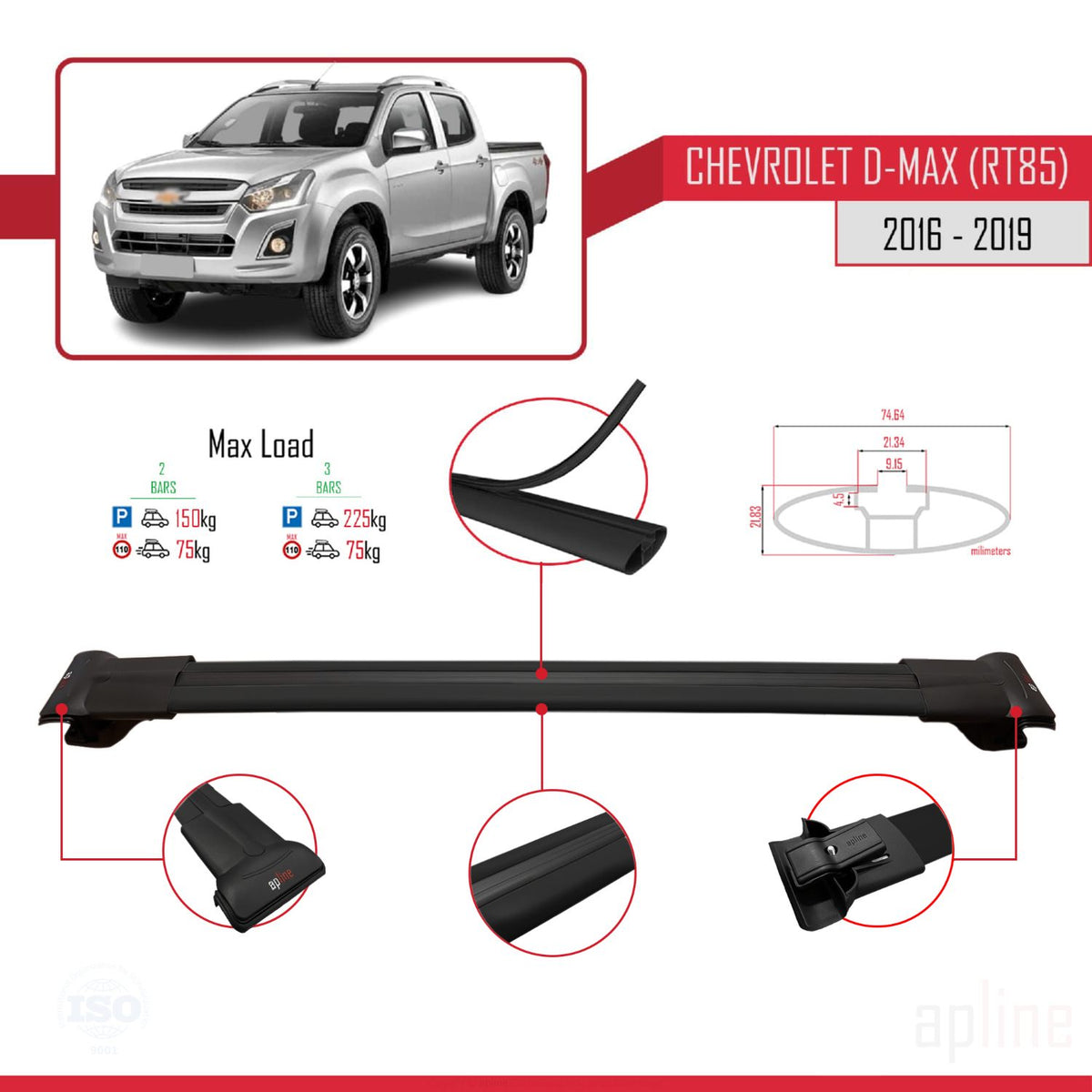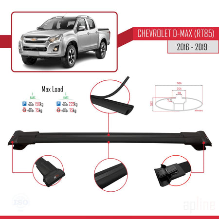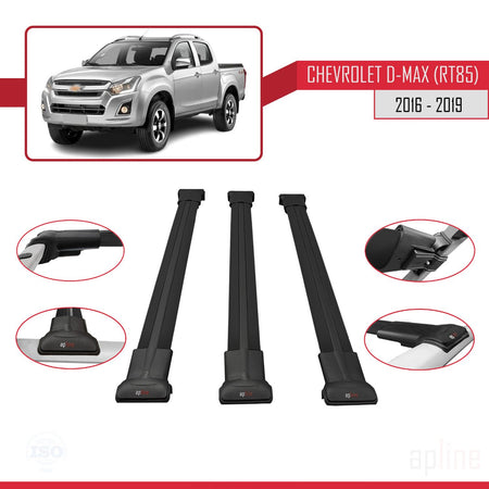 Chevrolet D-Max (RT85) 2016-2019 fly Model Car Roof Rack Cross Bar Black Aluminium 3 Bars