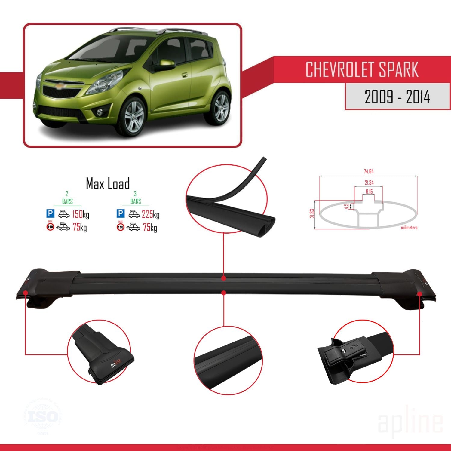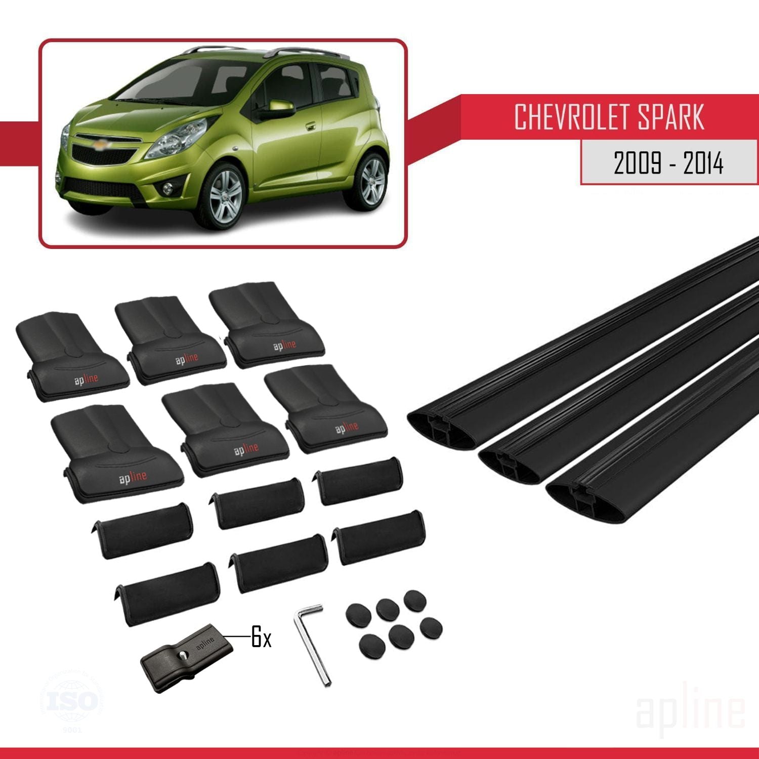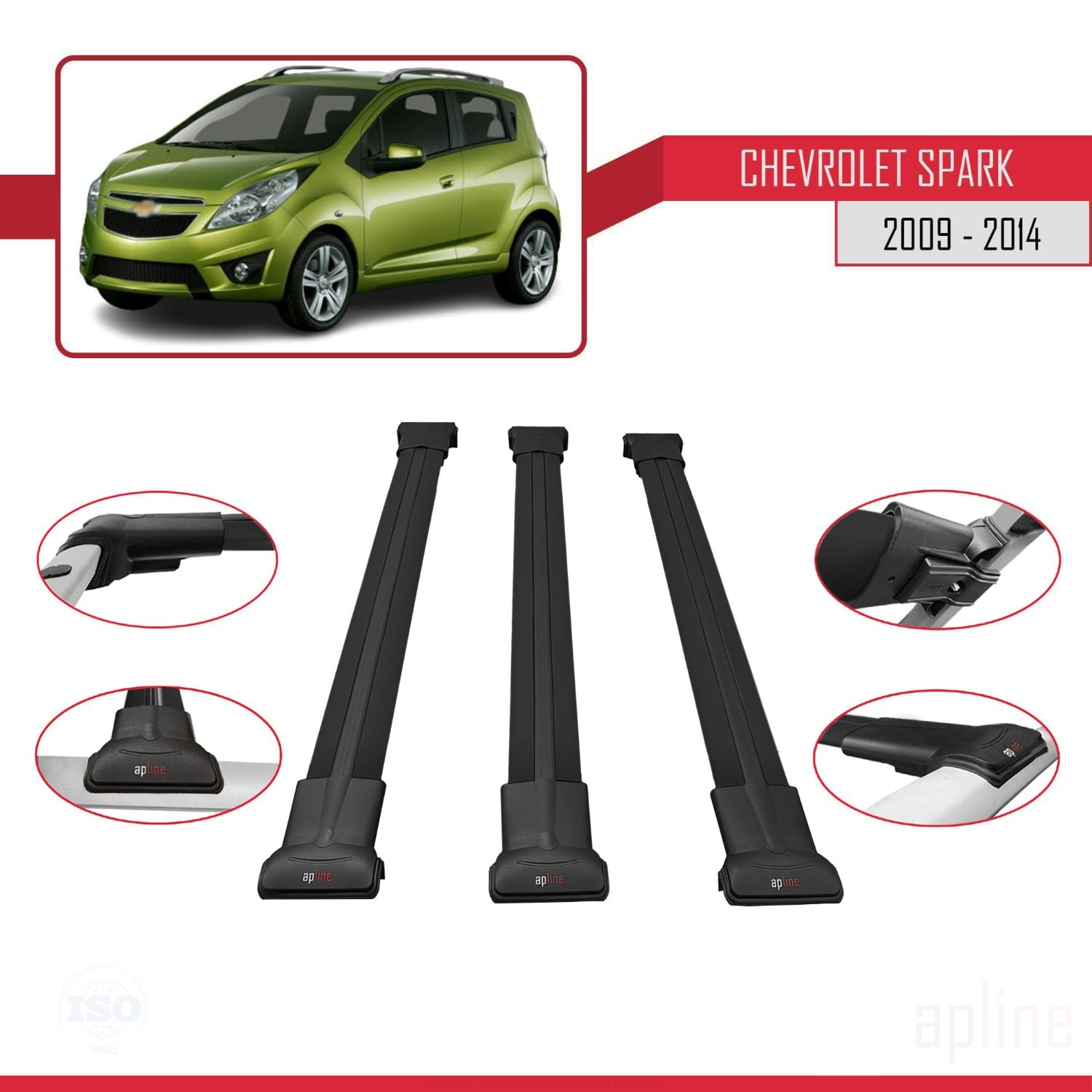 Chevrolet Spark (M300) 2009-2014 fly Model Car Roof Rack Cross Bar Black Aluminium 3 Bars
