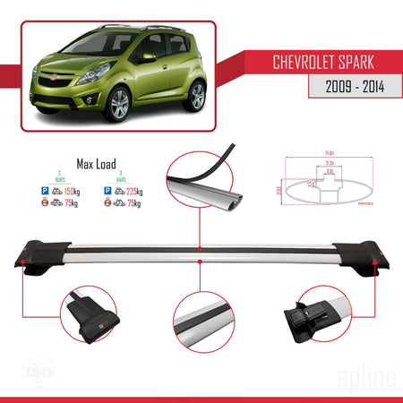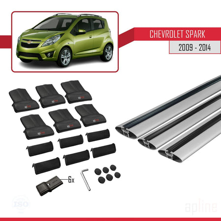 Chevrolet Spark (M300) 2009-2014 fly Model Car Roof Rack Cross Bar Grey Aluminium 3 Bars