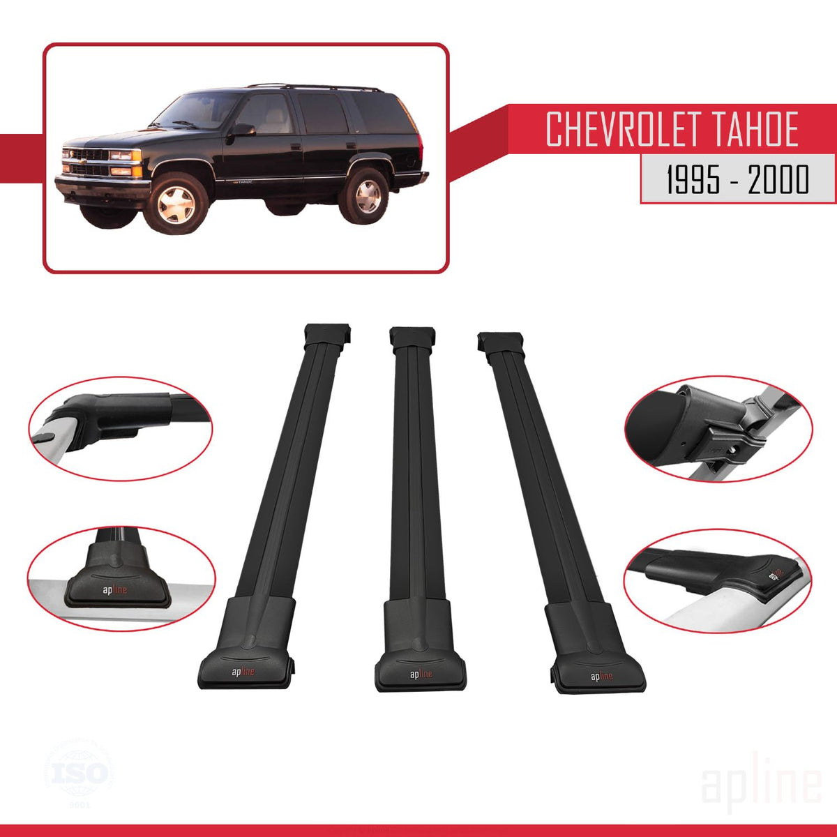 Chevrolet Tahoe 1995-2000 fly Model Car Roof Rack Cross Bar Black Aluminium 3 Bars