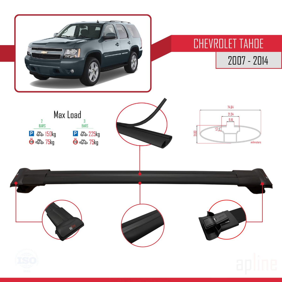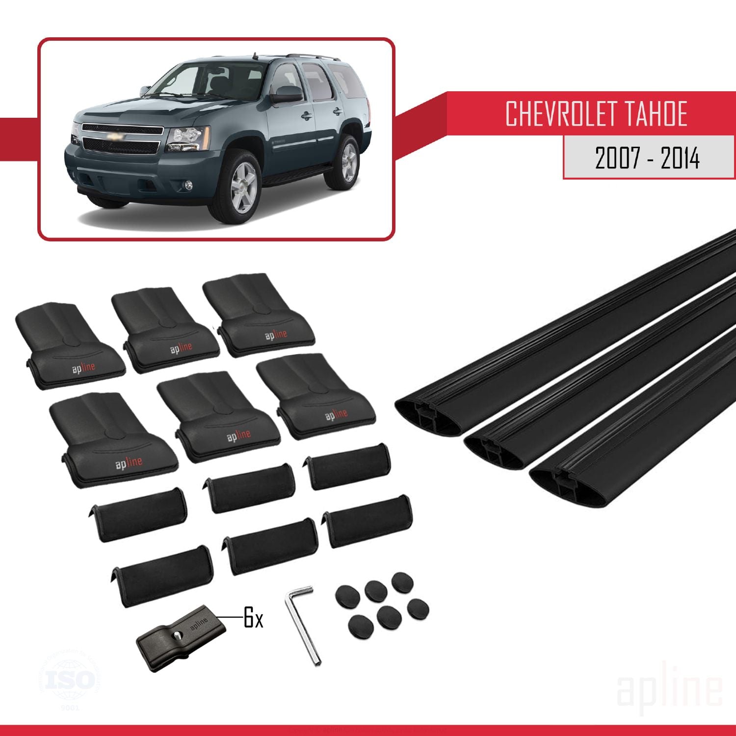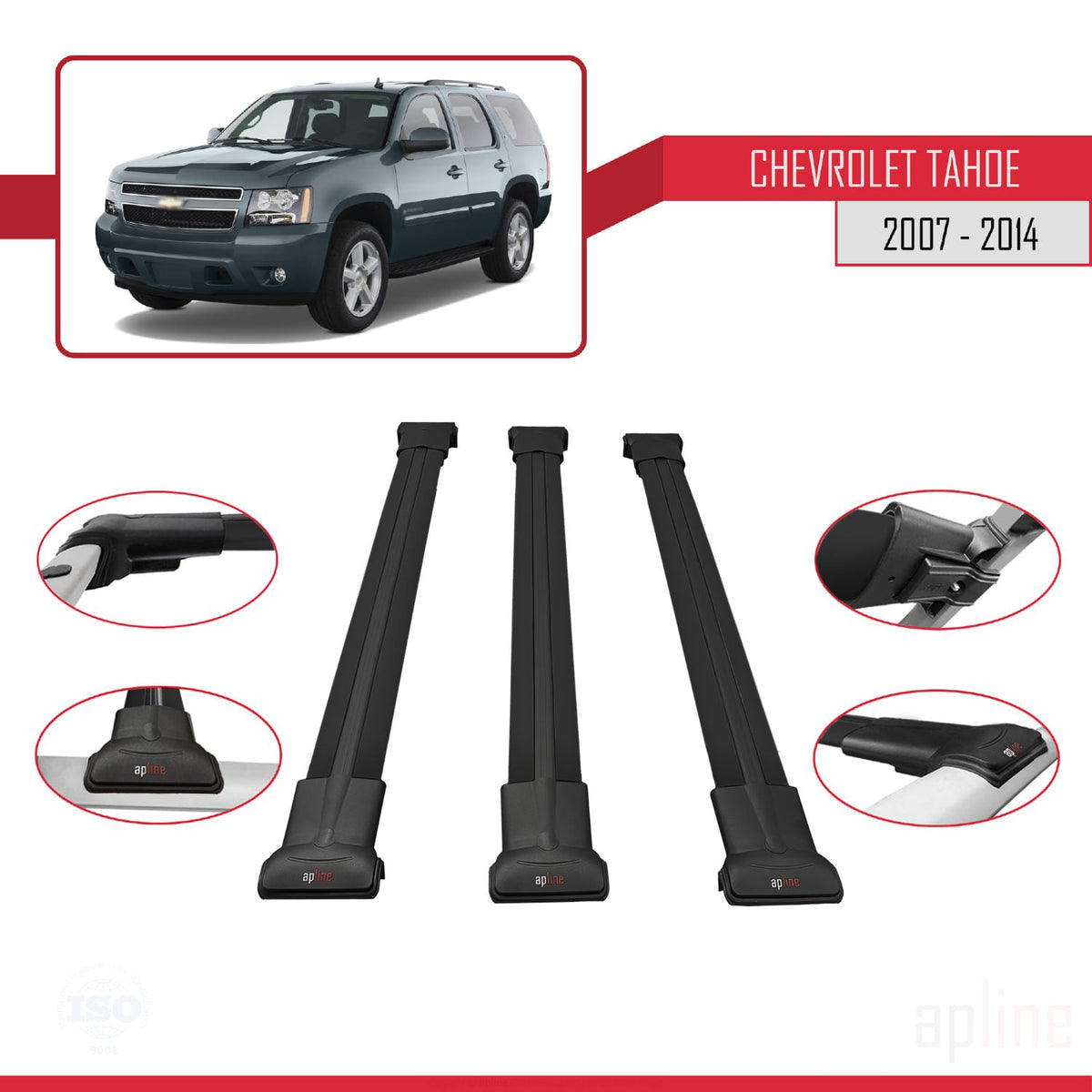 Chevrolet Tahoe 3 2007-2014 fly Model Car Roof Rack Cross Bar Black Aluminium 3 Bars