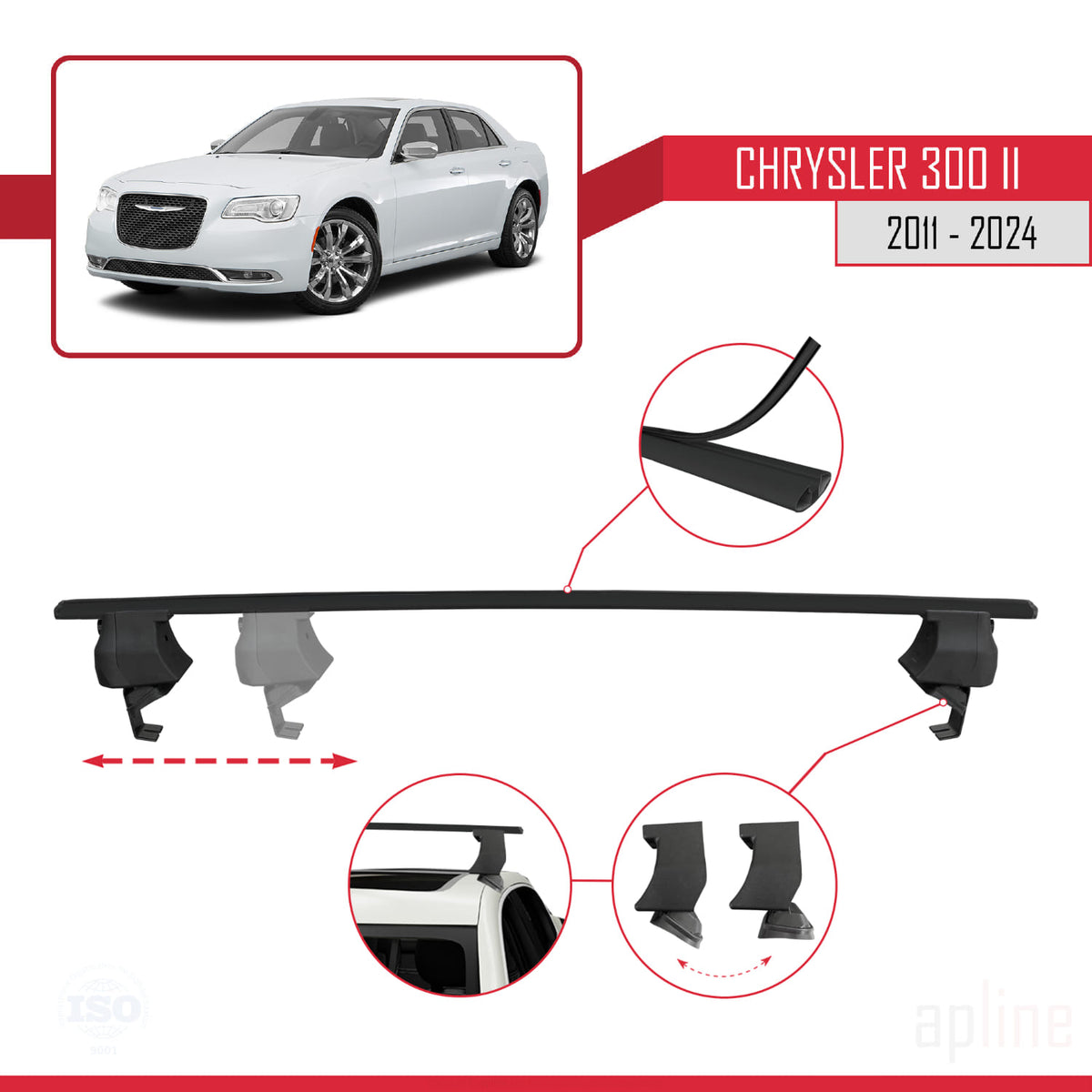 Chrysler 300 II (LD) 2011-2023 ace4 Car Roof Rack Cross Bar Black Aluminium 2 Bars