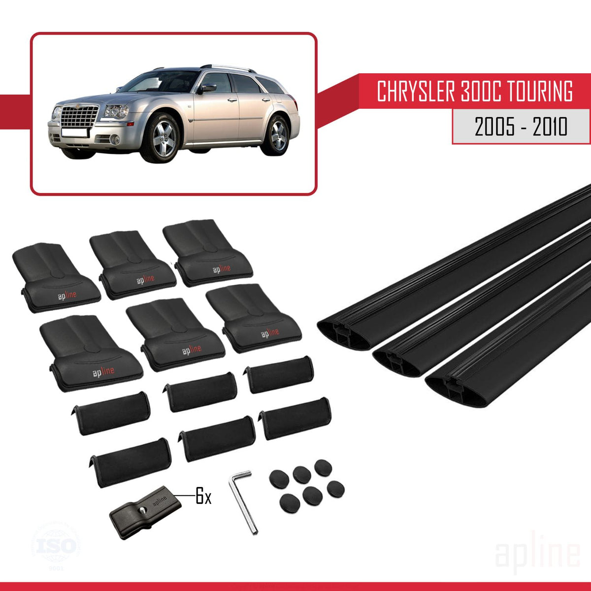 Chrysler 300C Touring 2005-2010 fly Model Car Roof Rack Cross Bar Black Aluminium 3 Bars