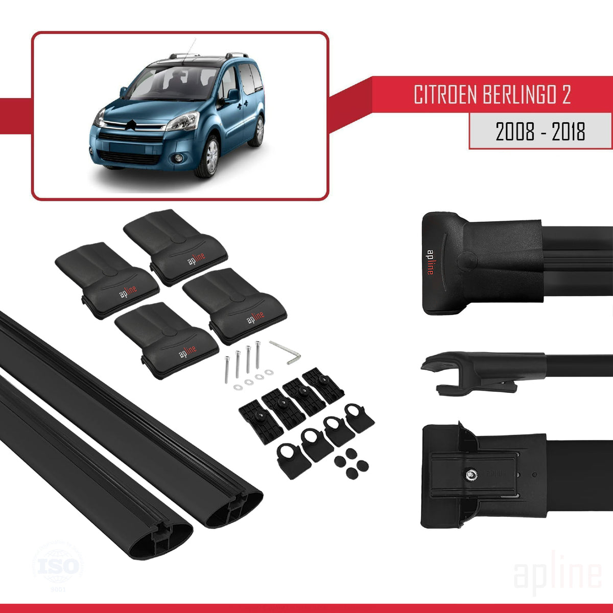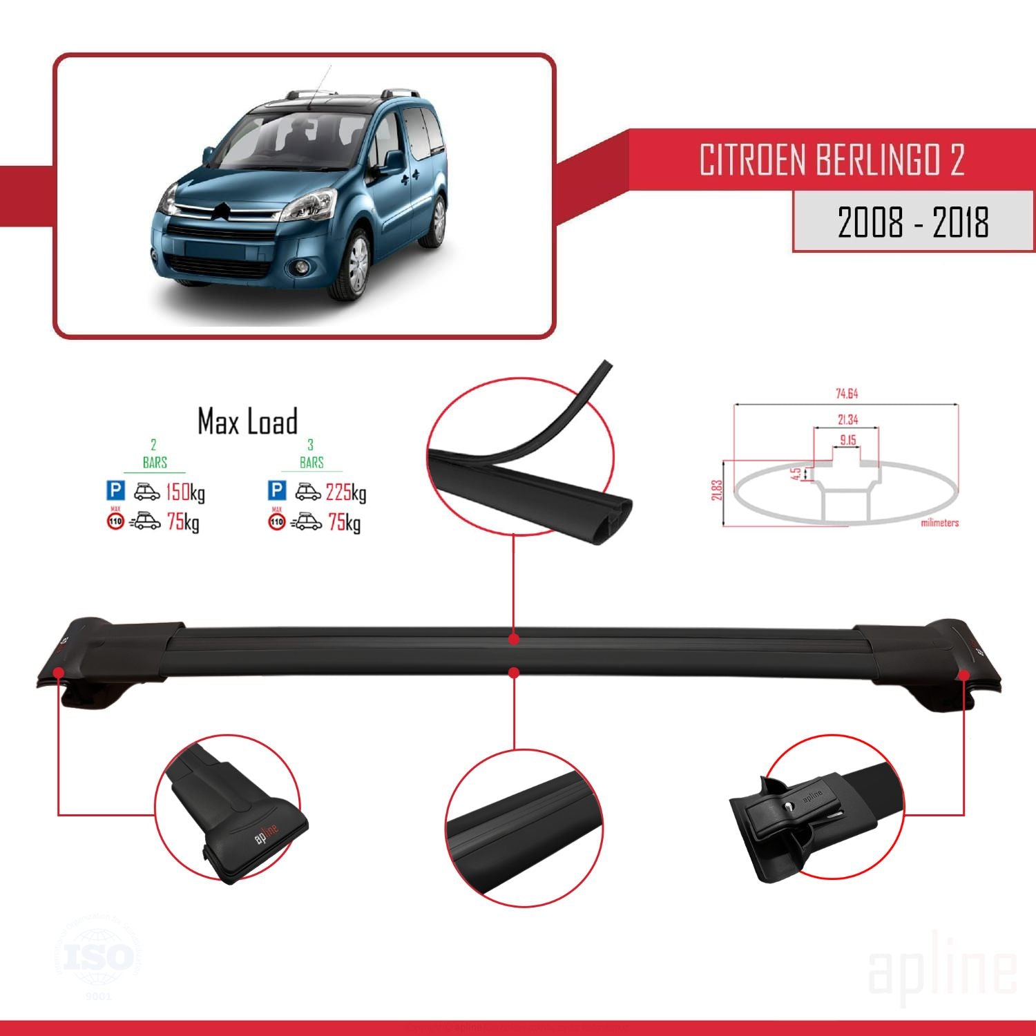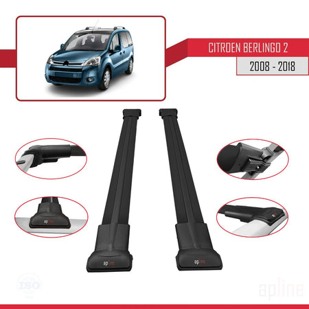 Citroen Berlingo 2 (B9) 2008-2018 fly Model Car Roof Rack Cross Bar Black Aluminium 2 Bars