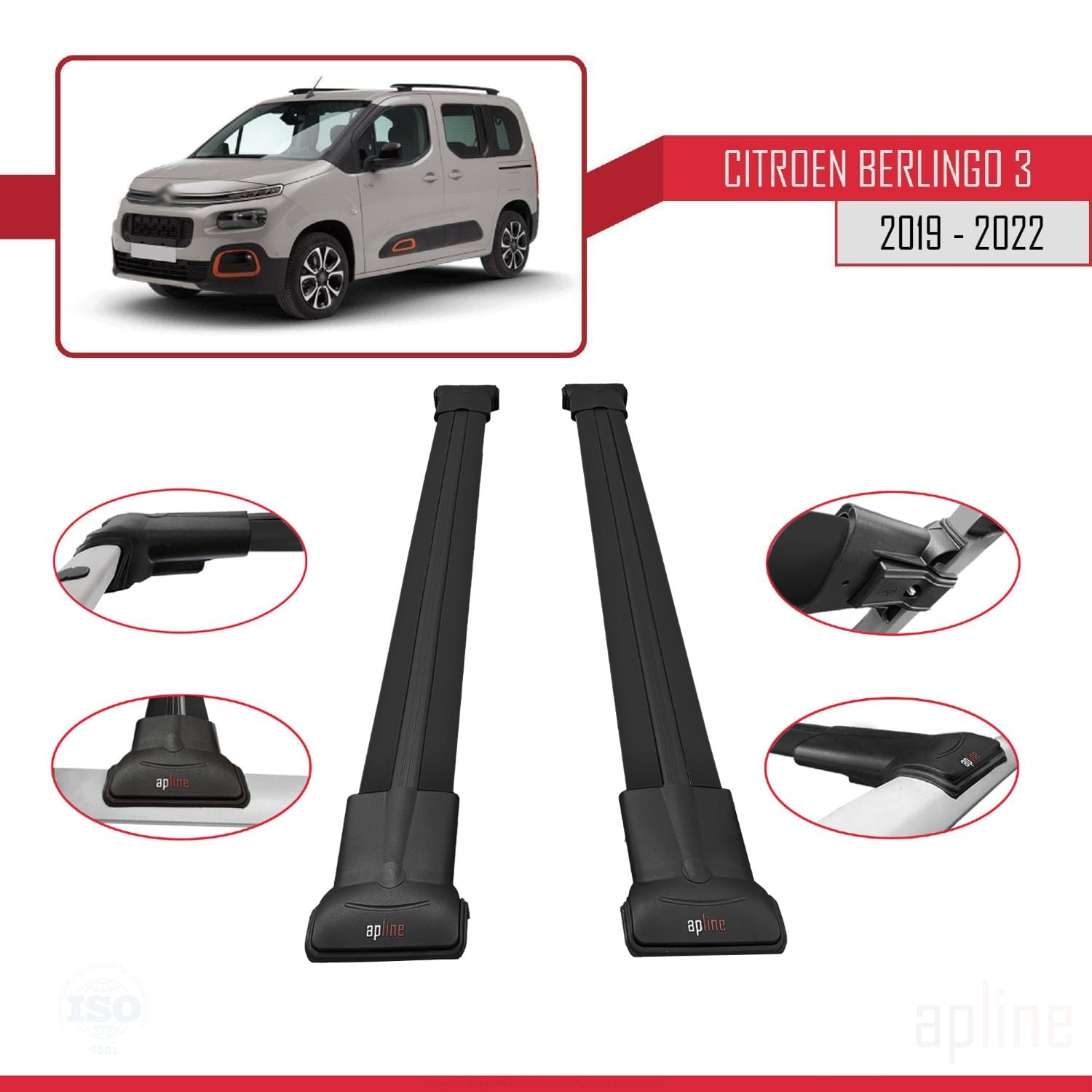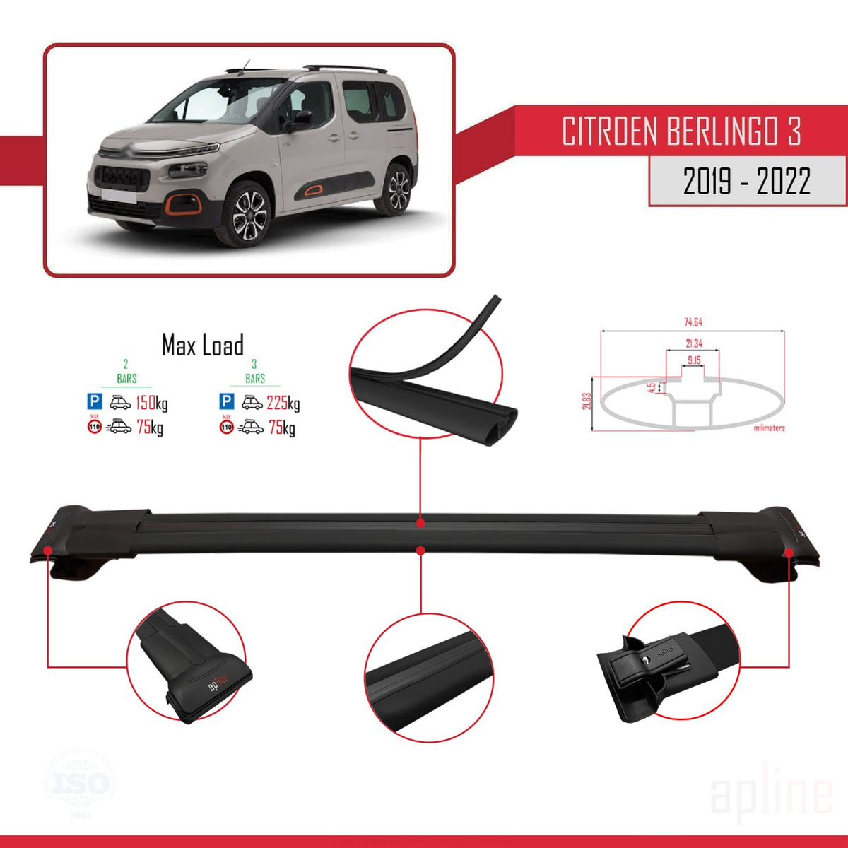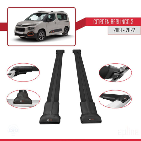 Citroen Berlingo 3 (K9) 2019-2022 fly Model Car Roof Rack Cross Bar Black Aluminium 2 Bars