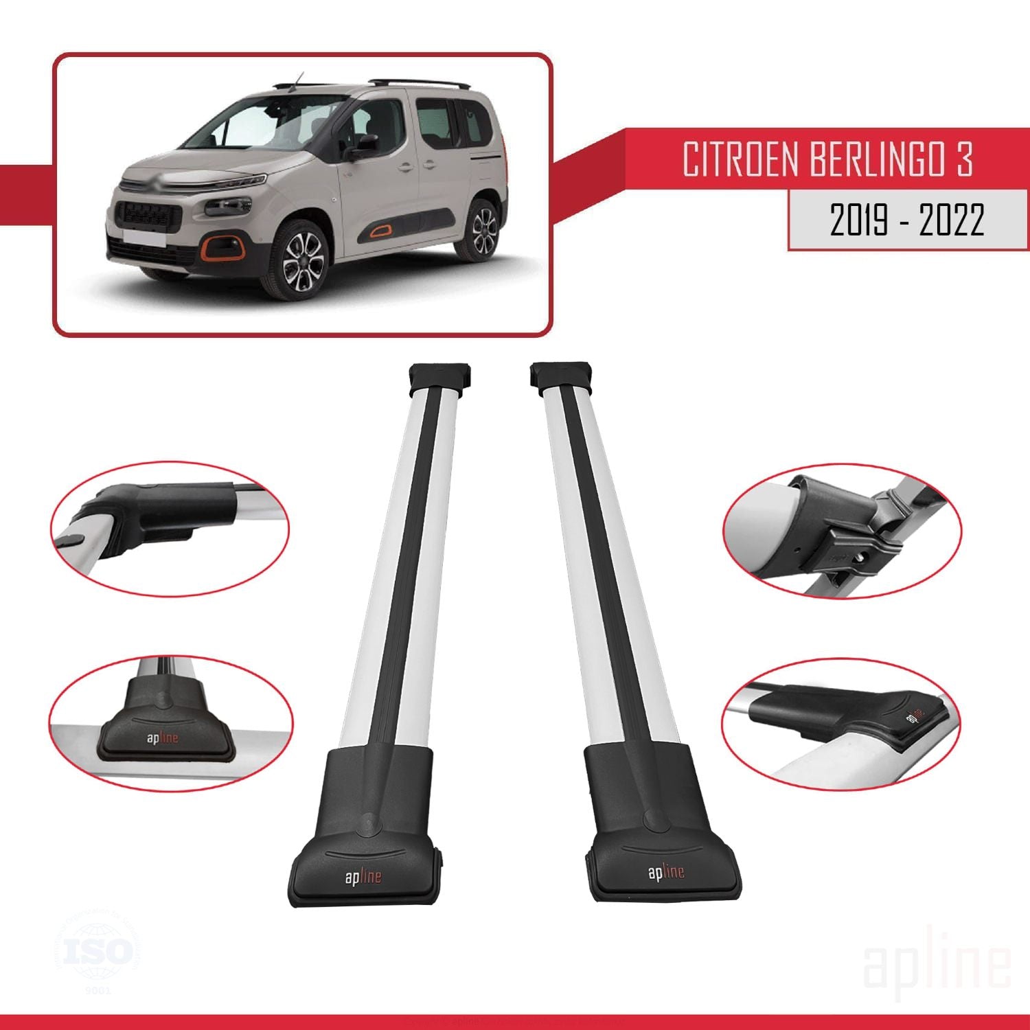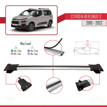 Citroen Berlingo 3 (K9) 2019-2022 fly Model Car Roof Rack Cross Bar Grey Aluminium 2 Bars