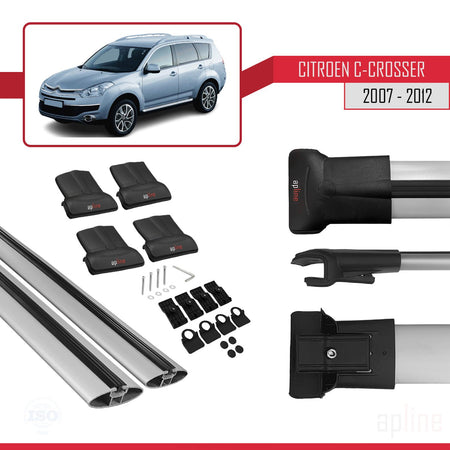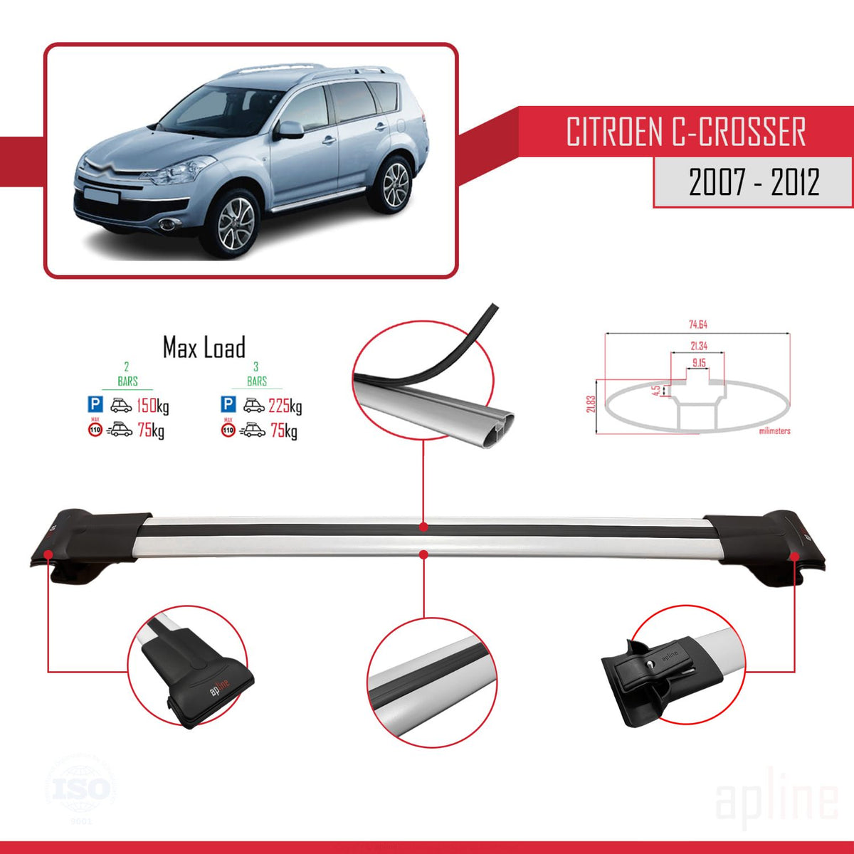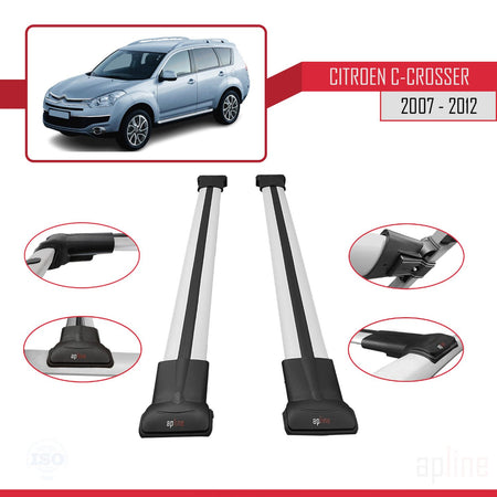 Citroen C-Crosser 2007-2012 fly Model Car Roof Rack Cross Bar Grey Aluminium 2 Bars