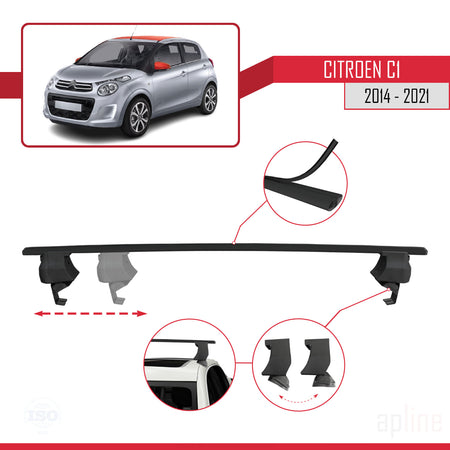 Citroen C1 (AB40) 2014-2021 ace4 Car Roof Rack Cross Bar Black Aluminium 2 Bars